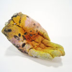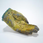 I have developed a process utilizing my knowledge of various casting methods and glaze, chemistry to create forms made entirely glaze. The color and texture is appealing and repulsive at the same time. When viewed through a magnifying glass the surface resembles Scanning Electron Micrographs of cancer cells. The fragile and fleeting appearance of these pieces symbolizes the transient nature of human life. This series of glaze, casted hands represent the genetic passing of disease from generation to generation. It is my fear that my family’s history with cancer is somehow genetic.