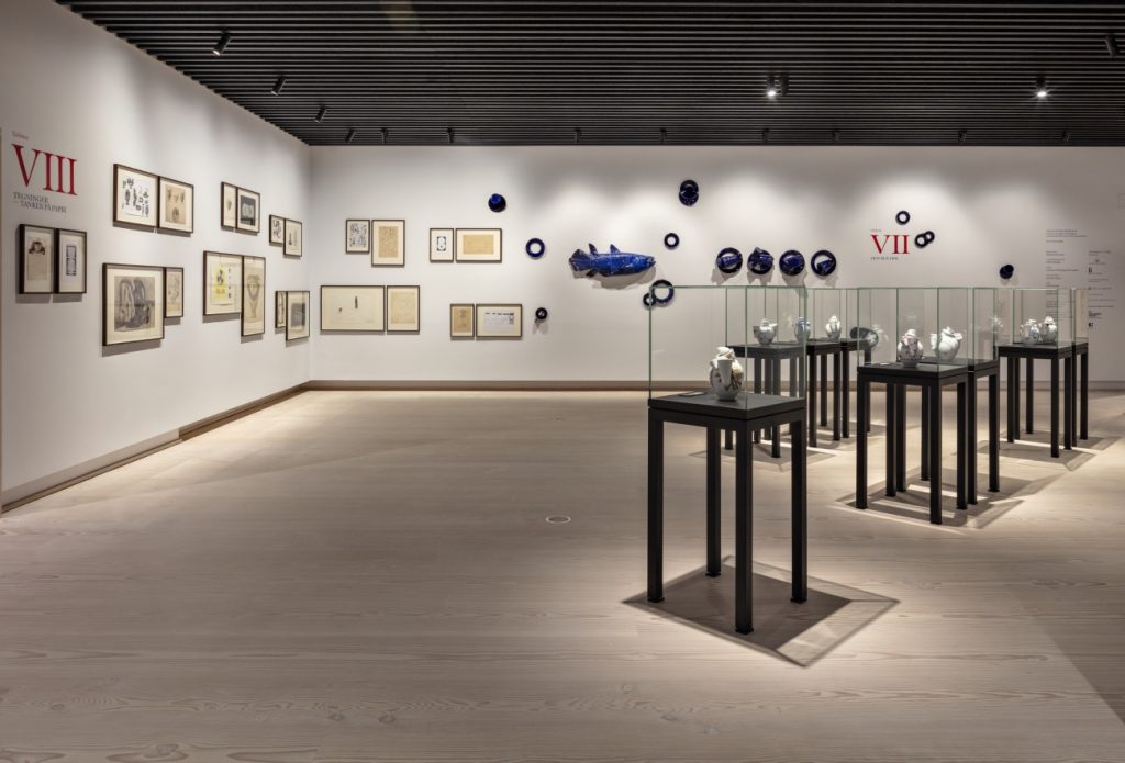 Dealing with 250 years of porcelain history there are plenty of topics to address. There is the story of porcelain, also known as ‘white gold’, which once was reserved for the wealthy elite but now is considered an everyday commodity. Or the story of the Blue Fluted pattern, the factory’s first design presented in 1793 which had transformed from an original Chinese design via German porcelain painters into a special Danish variation – today almost iconic for Danish porcelain, and particularly for Royal Copenhagen. The Blue Fluted has since been the subject of several reinterpretations. One example is Karen Kjeldgård-Larsen’s Blue Fluted Mega, a design that revitalised the historic pattern around the turn of the last millennium.