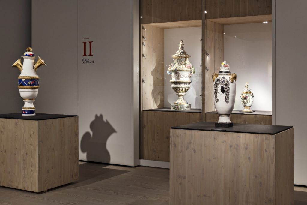 As the Royal Copenhagen Porcelain Factory celebrates its 250th anniversary this year, it remains an active player on both the domestic and international markets. As home to the historical Royal Copenhagen Collection, which was donated to CLAY Museum of Ceramic Art Denmark in 2010 by the factory, it is only natural for the museum to mark this impressive historical milestone. To do so, the museum invited the potter, designer and ceramic artist, Michael Geertsen, to create an exhibition that stages a dialogue between his own works of ceramic art and selected historical pieces from the factory. As an artist, who has been equally fascinated and repelled by some of the most opulent works produced at the factory, Michael Geertsen has taken on the challenge. In ten curated tableaux, the old pieces are staged next to Geertsen’s own works and cast new light on the long history of Royal Copenhagen.