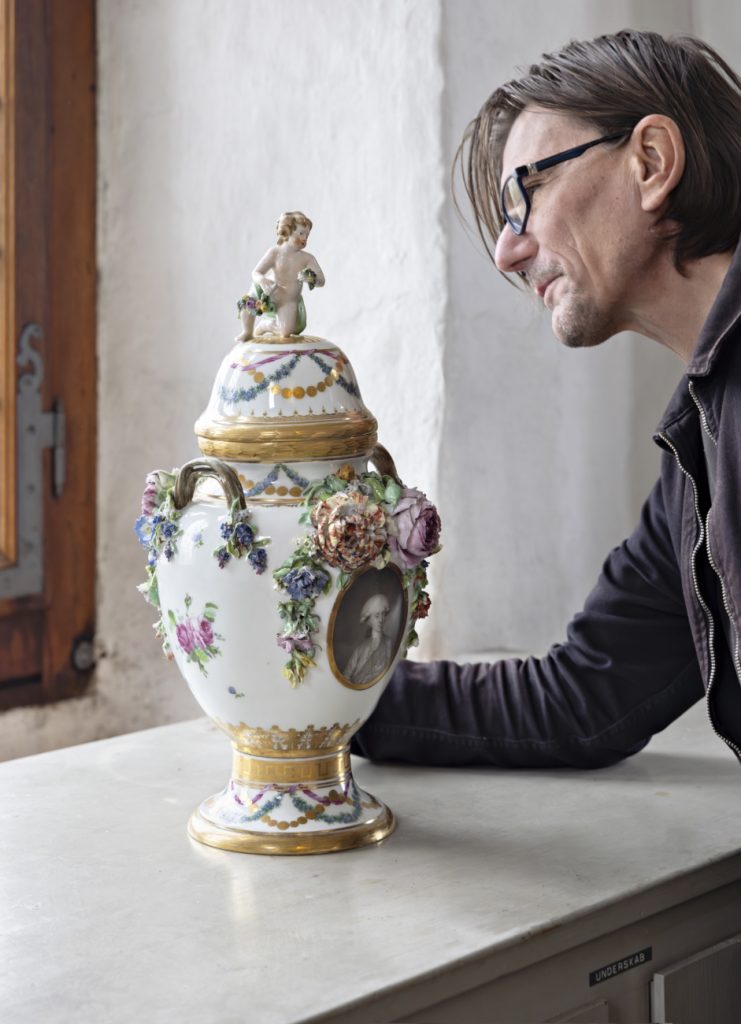 - Michael Geertsen inspects a lidded base at Rosenborg Castle. Lidded vase with a portrait of Crown Prince Frederik VI. The Royal Porcelain Factory, 1984-86.