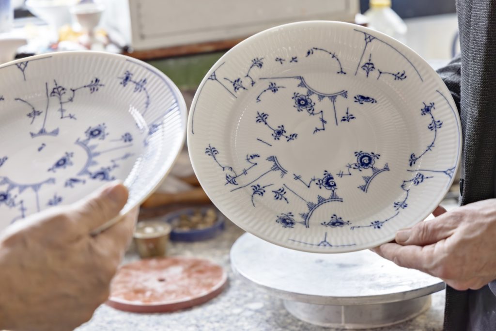 The Danish Porcelain Factory was founded in 1775 in Købmagergade in Copenhagen by pharmacist Frantz Heinrich Müller under the patronage of Queen Dowager Juliane Marie. The factory’s characteristic mark with the three waves represents Denmark’s three main waterways: the Sound, the Great Belt and the Little Belt. In 1779, the factory was taken over by Christian VII and renamed the Royal Danish Porcelain Factory.