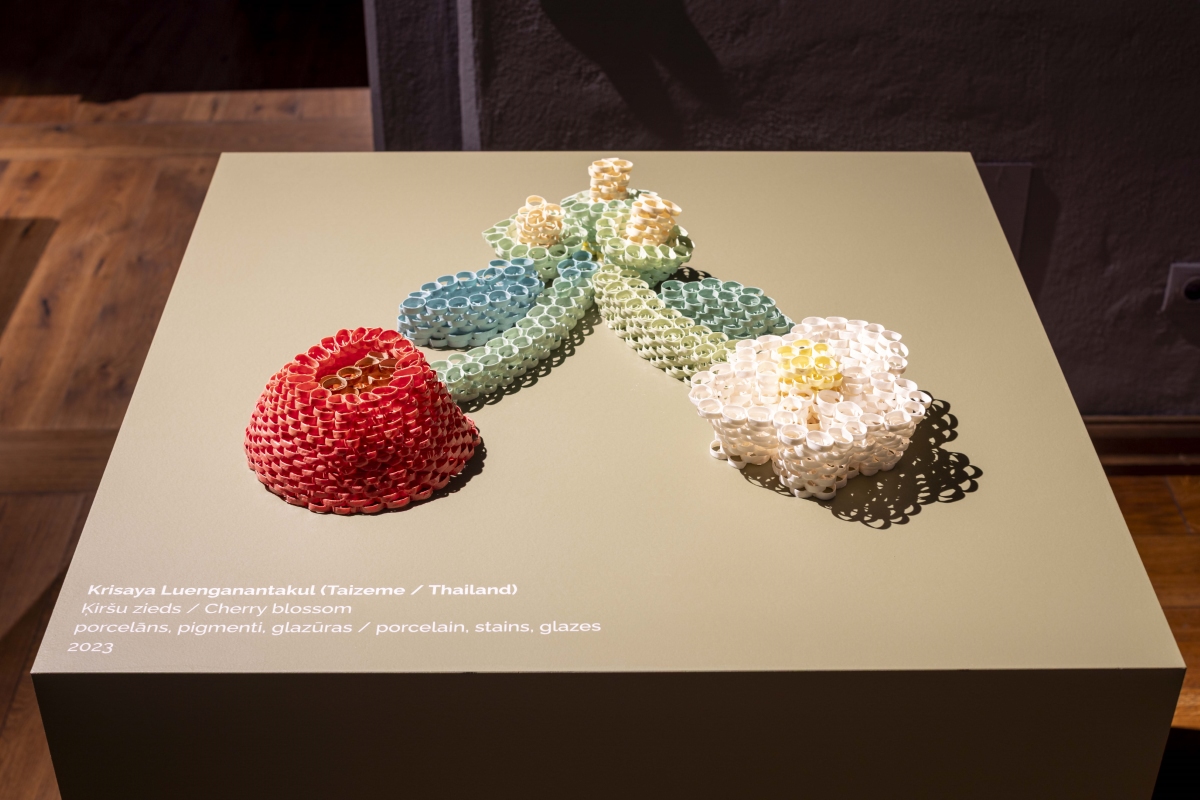 It is practically impossible to describe every artist in such a rich exhibition. This article aims to highlight the works particularly noted by the jury. Yet it must be stressed once again that the exhibition abounds in remarkable technical solutions, diverse ideas and outstanding craftsmanship. The biennale’s theme is also excellently reflected in the physical presentation of the works and exhibition design. The interplay of light and shadow not only highlights individual pieces but also creates an overall atmosphere, where individual elements merge into a cohesive portrait of the Latvia International Ceramics Biennale.