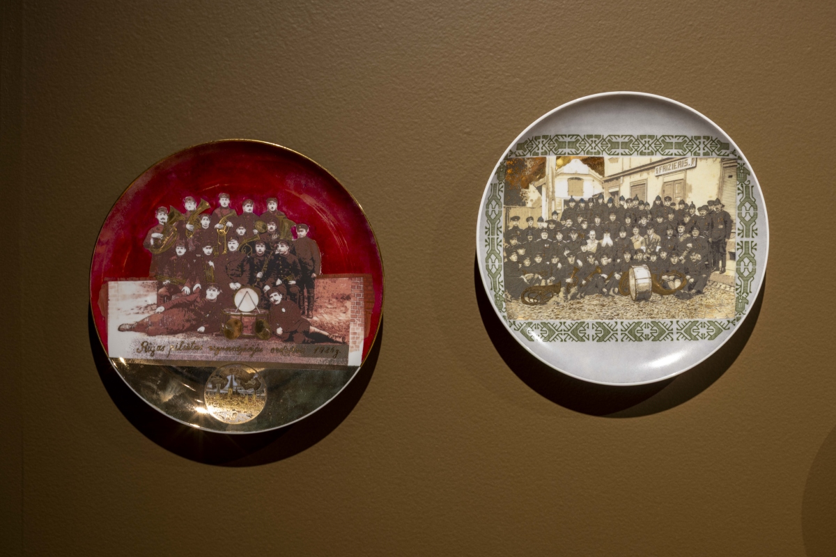 Alongside conceptual strength, her work is characterised by exceptional technical mastery. She is particularly interested in re-using old decals from the now-defunct Riga Porcelain Factory in a contemporary context. She often incorporates found historical objects into her artworks: old factory decals or, in her latest series, historical photographs. Using contemporary technologies, she transforms these historical artefacts for present and – she hopes – future generations. The work exhibited at the biennale, A Tribute to the Brass Bands of the First Independent Latvian State, combines historical narrative, modern technologies and current global events. It depicts early 20th-century Latvian freedom fighters – members of military brass bands. The orchestra is chosen as a symbol of emotional strength and unity, striving for independence. In today’s context, echoes of the past gain renewed relevance, resonating not only with Brants herself, but also with other artists. The connection with the author’s historical roots is also conveyed through the work’s color scheme. Surfaces lavishly decorated with gold and platinum lustres gleam and radiate luxury, and this brilliance is drawn from Latvian folk tales. It is also her personal way of honouring key historical figures through what she excels at most – the demanding and delicate techniques of porcelain decoration, where corrections are almost impossible. Brants also undertook meticulous research, selecting the best photographs from 12 Latvian museums, processing them, creating decals via silk-screen printing and finally hand-painting them to produce the remarkable A Tribute to the Brass Bands of the First Independent Latvian State series – truly deserving of gold.