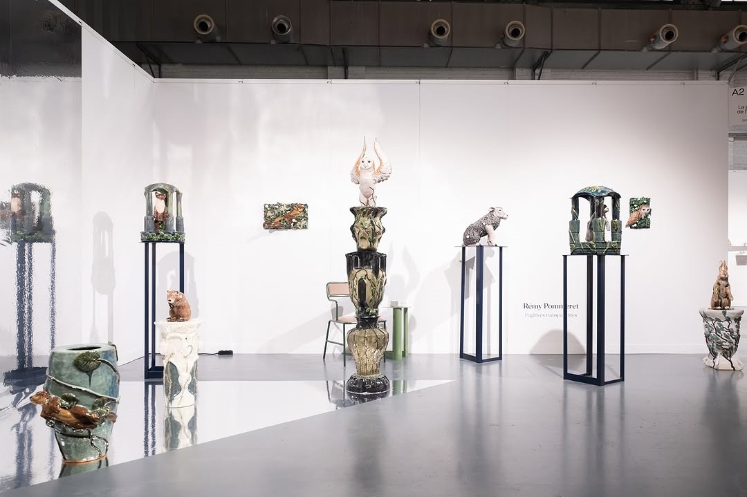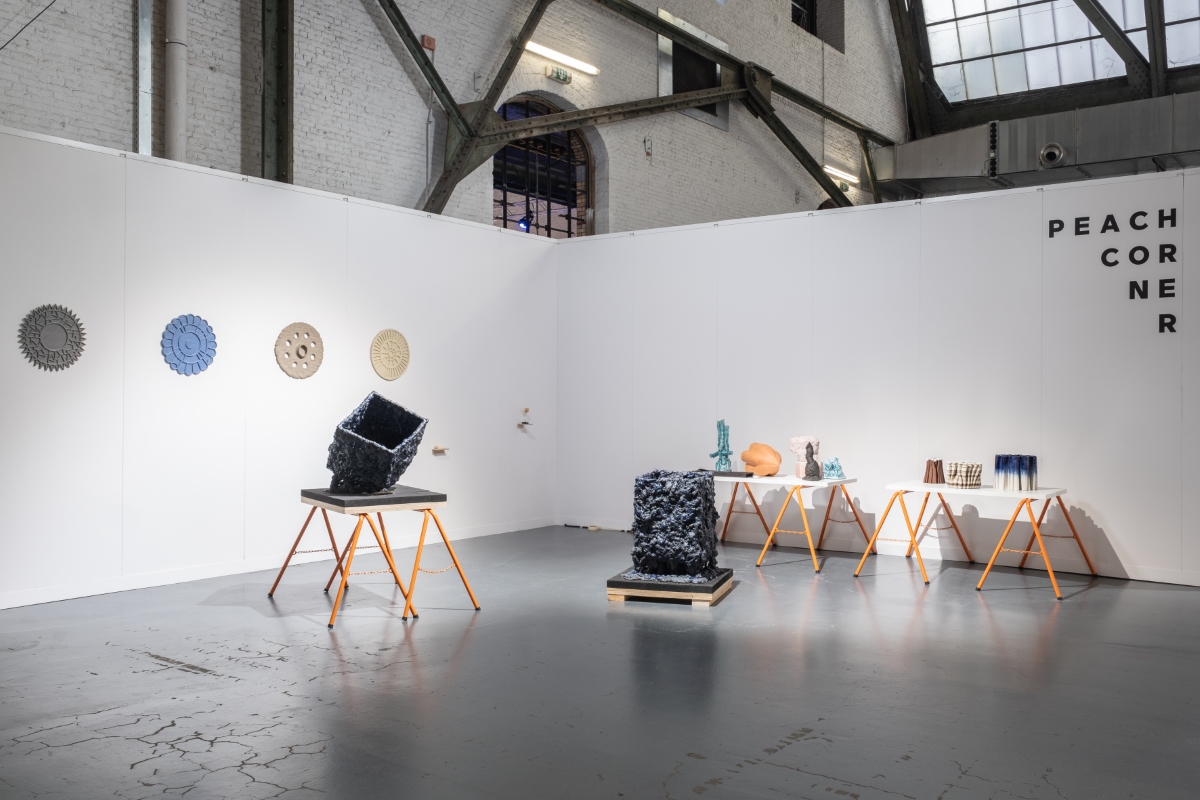 Galerie SCENE OUVERTE (Paris) created an impressive setting with the curved ceramic benches by Rino Claessens, positioned in front of a monumental architectural wall structure by Vincent Dubourg. This striking presentation earned it the Best Stand Award.