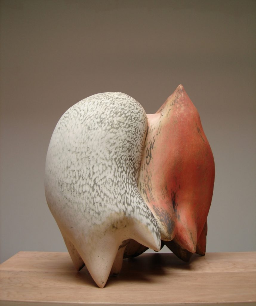 - Two Birds Dancing, 2007, Clay, slip, oxide, 26 x 24 x 12 in. Collection of Andrea Packard. Photo by Jack Ramsdale.