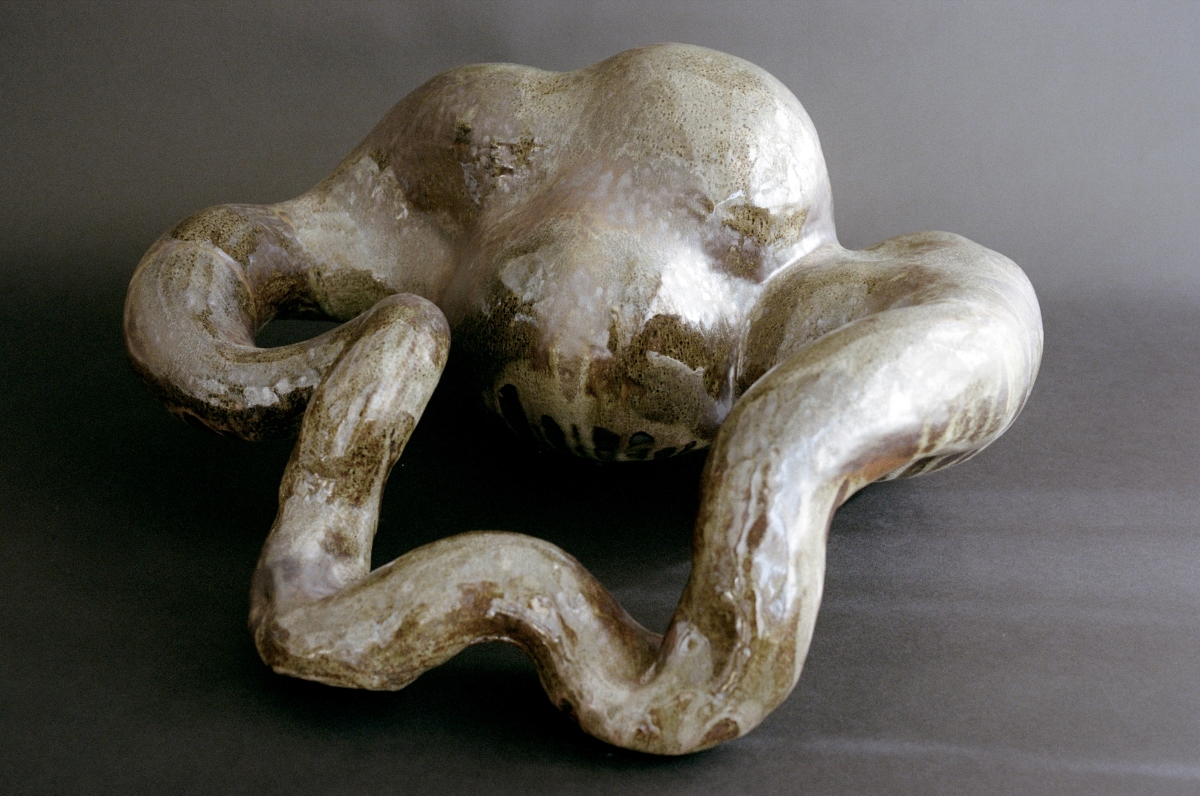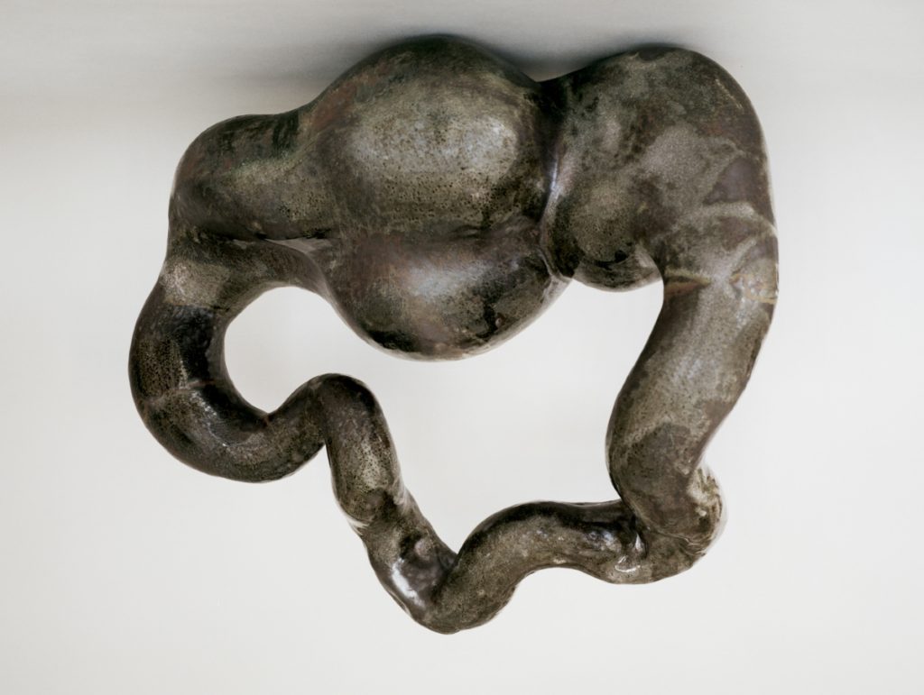 Working within ideas of transformation, Berta-Blanca T. Ivanow (*1992) introduces a practice that approaches clay as a mutable, responsive material. An emerging artist from Barcelona, Ivanow channels her multidisciplinary practice – sculpture, performance, and cinematography – into stoneware clay, occasionally combined with paper, metal, or soap, crafting forms that pulse with movement, transformation, and impermanence. Ivanow’s sculptures seem alive, in flux, suggesting processes of growth, decay, and regeneration. Executed in her studio in the Catalonian countryside, they carry a deep connection to the natural world, responding to the elements of earth, fire, water, air, and aether in a non-hierarchical interplay. Trained at Central Saint Martins in London and The Art Students League in New York, Ivanow balances rigorous material experimentation with a profoundly corporeal and intuitive approach. Her works resonate with primal, archaic forces, reflecting ritual, instinct, and the pre-linguistic memory of the body. Cracks, fissures, and hollowed spaces allow light to filter through, creating a sense of interiority and inviting viewers to explore the depth of each form. In their nomadic, mutable shapes, her sculptures suggest organisms in transit – wombs that do not give birth, bodies in potential, landscapes in motion – capturing the ephemeral and generative qualities of life itself. At the fair, Ivanow’s works emerged as one of the highlights, offering a powerful and distinctly embodied vision of ceramics as a living, transformative medium.