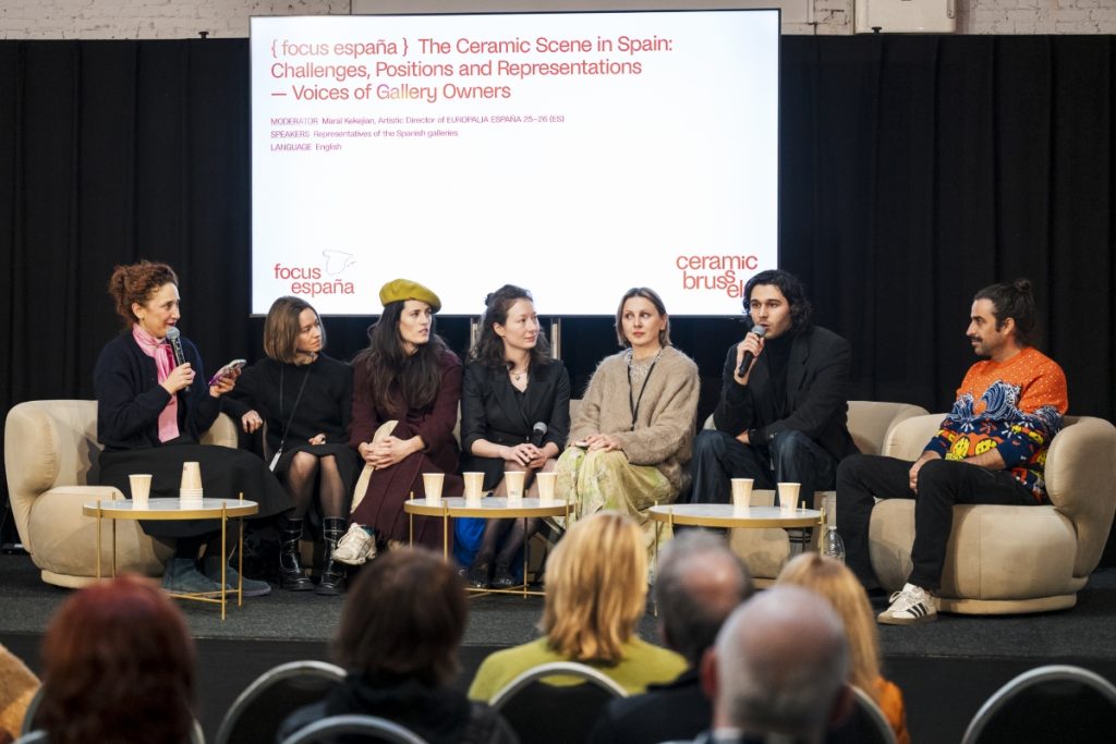 Beyond the gallery presentations, Focus España unfolded through a program of talks and conversations, bringing together leading voices from the Spanish ceramics scene – artists, curators, museum directors, and gallery representatives. A recurring theme throughout these discussions was how ceramics can gain greater visibility within the contemporary art field, and the role institutions and museums play in this process. One of the key conversations, Ceramics in Spanish Institutions: Challenges and Shared Perspectives, featured Oriol Calvo Vergés (president of the International Academy of Ceramics), Jaume Coll (Director of the National Spanish Ceramics Museum in Valencia), and the Barcelona-based artist Sophie Aguilera, addressing questions such as: How do Spanish institutions support, promote, and give visibility to artistic ceramics? The discussion highlighted both structural challenges and opportunities: It was noted the fragmentation of national narratives, with many autonomous regions acting independently, while museums were seen as crucial not only for acquiring ceramic works for their collections but also for setting standards and shaping public perception of the medium. All three panelists agreed on the ongoing “fight for the image of ceramics”, emphasizing that, despite a growing contemporary market, the struggle for recognition is similar to that in other countries. Education also emerged as a central concern: while many Spanish artists are trained in industrial ceramics, dedicated ceramics programs are largely absent from most Departments of Fine Art. This gap underscores the importance of both institutional support and informal pathways in sustaining contemporary ceramic practice.
