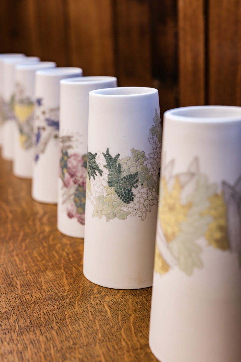 - (fig 9) Patterns of Flora – 7 parian vases, 2015, Slip case parian with enamel transfer. Courtesy of the artist. Image credit: Robin Zahler