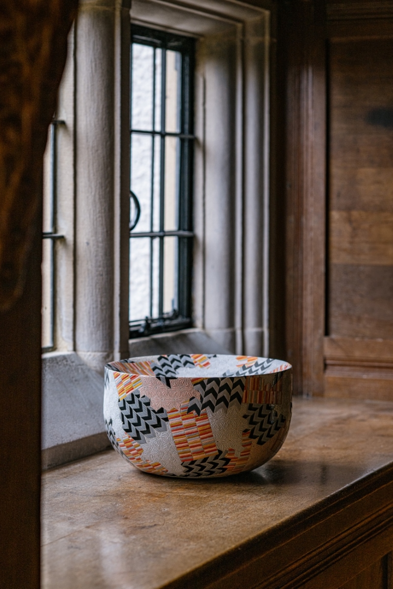 - (fig 4) Gathering Bowl: Grammar of Ornament: India I, 2017, Inscribed ceramics with vitreous slip glaze. Courtesy of the artist. Image credit: Robin Zahler