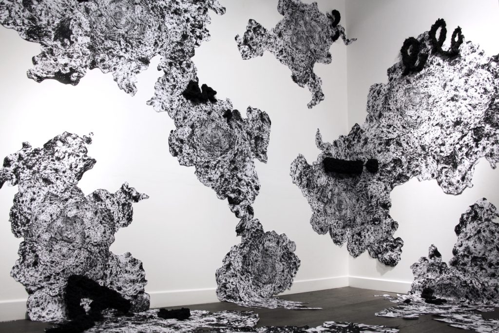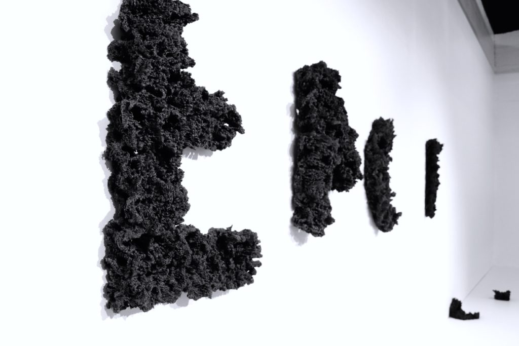 - Poros 3, 2018, installation, printed paper, earthenware, glaze. Exhibition Terrain vague, Centre Tignous d’art contemporain, Montreuil.