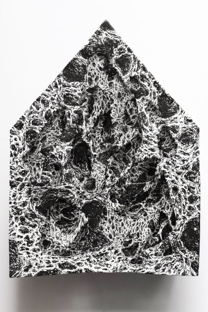 - Poros 1, 2017, installation, printed paper, stoneware.
