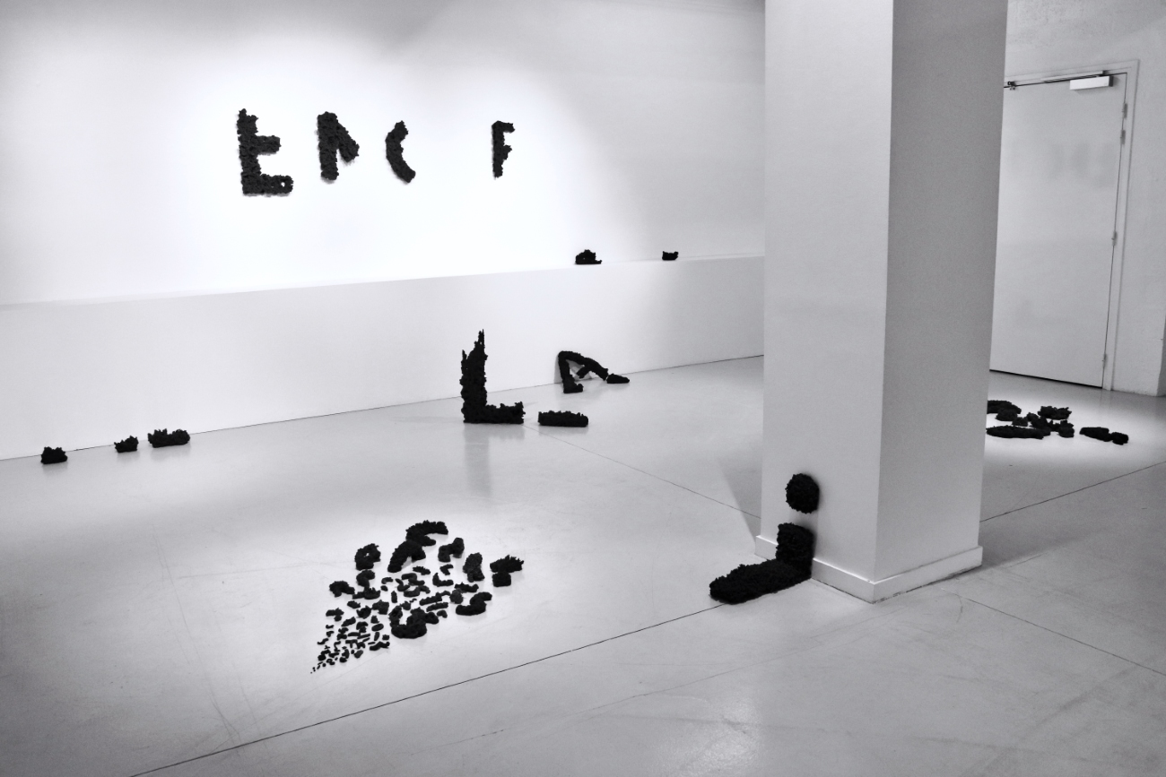 - Poros 3, 2018, installation, printed paper, earthenware, glaze. Exhibition Terrain vague, Centre Tignous d’art contemporain, Montreuil.