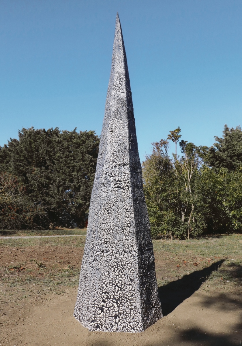 • Coquilles (flèche) 25, 2023, stoneware, glaze, 218 x 58 cm.