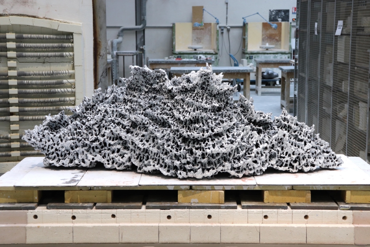 • Altus-Fluit, 2025, porcelain, glazes. Residency Le CRAFT, Centre de Recherche sur les Arts du Feu et de la Terre / Musée National Adrien Dubouché, Limoges.