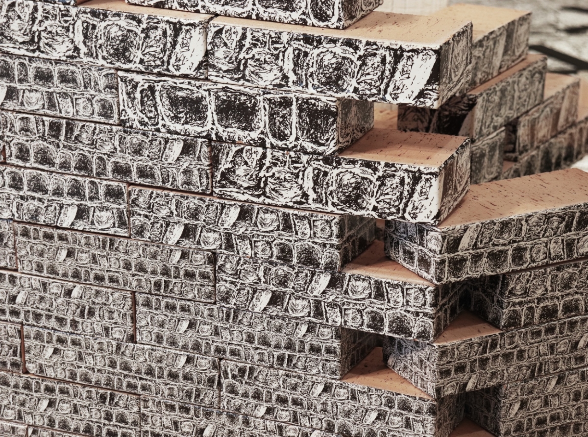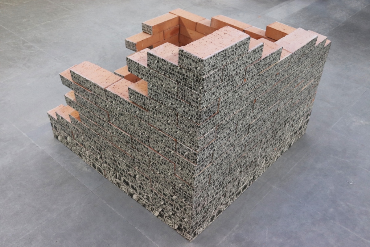 • Caryopse 3, 2021, bricks, glaze, 5,6 x 12,6 x 9,4 cm each brick. Solo show Caryopse, Maison des arts Rosa Bonheur, Chevilly-Larue.