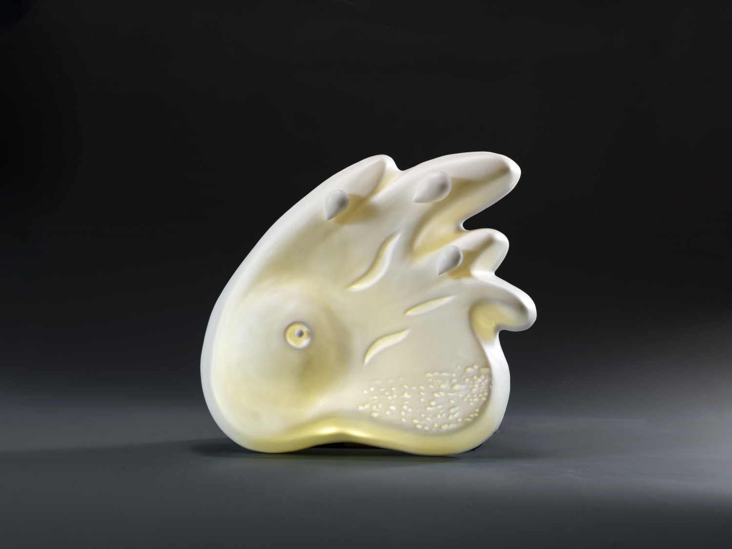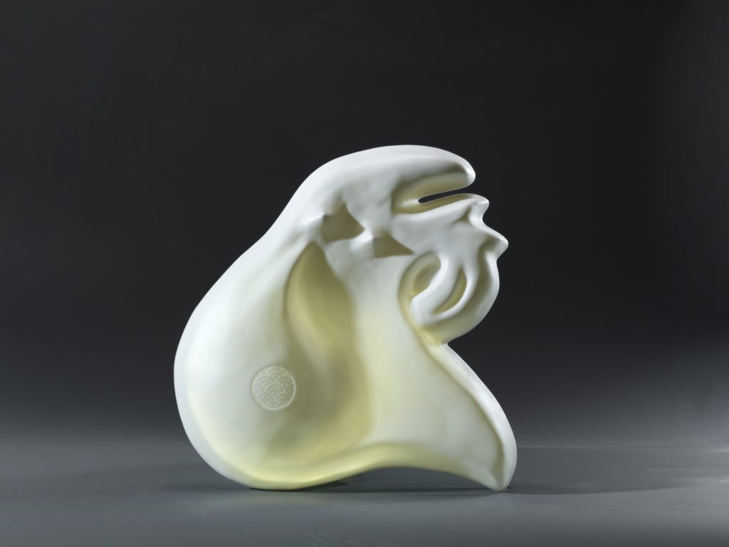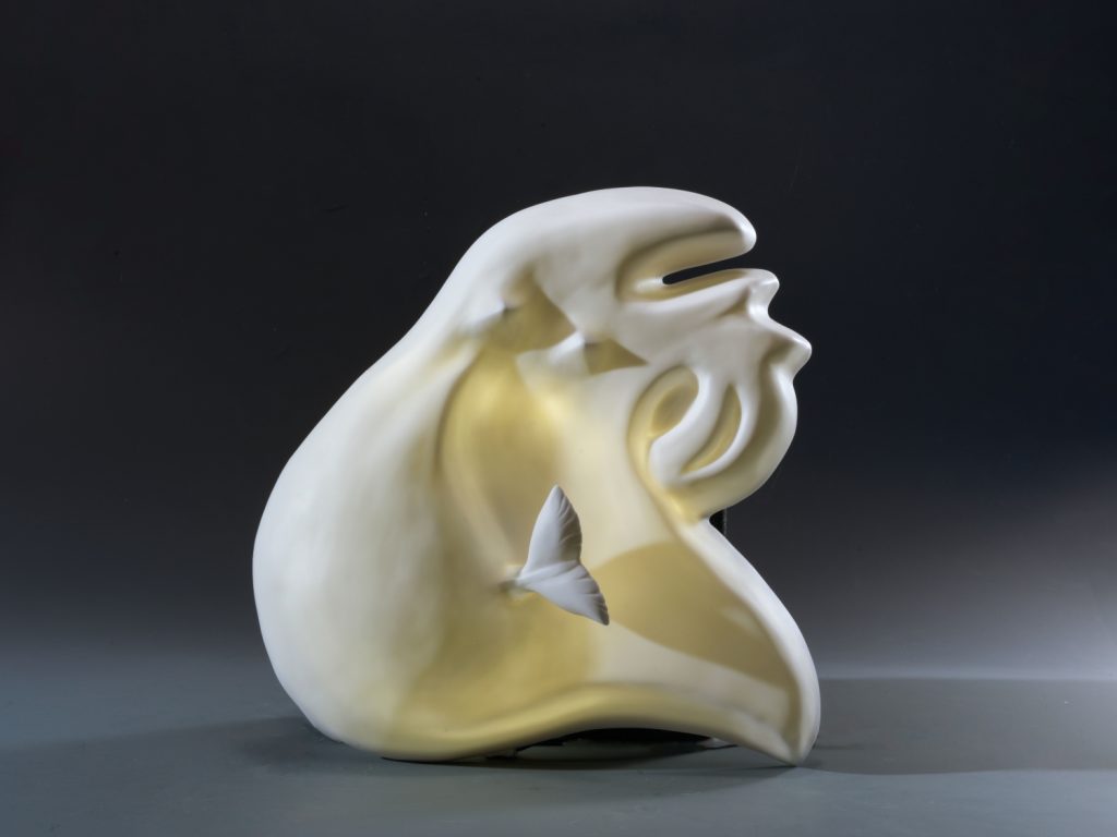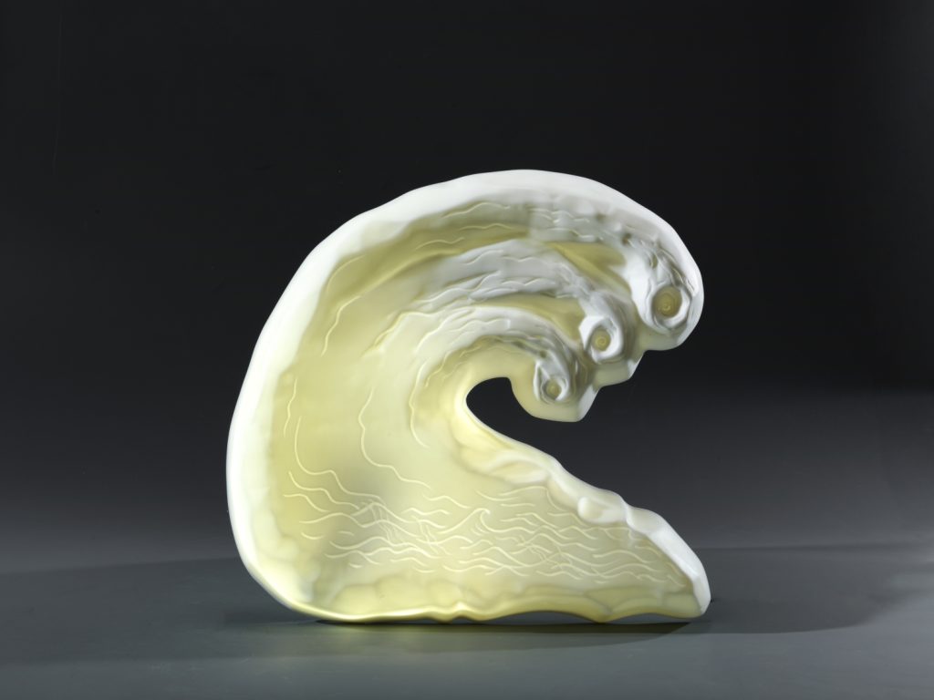 Whale Wave, 2024, translucent porcelain 1300ᵒC, 40 x 37 x 6,5 cm. Photo by Zheng Yongji