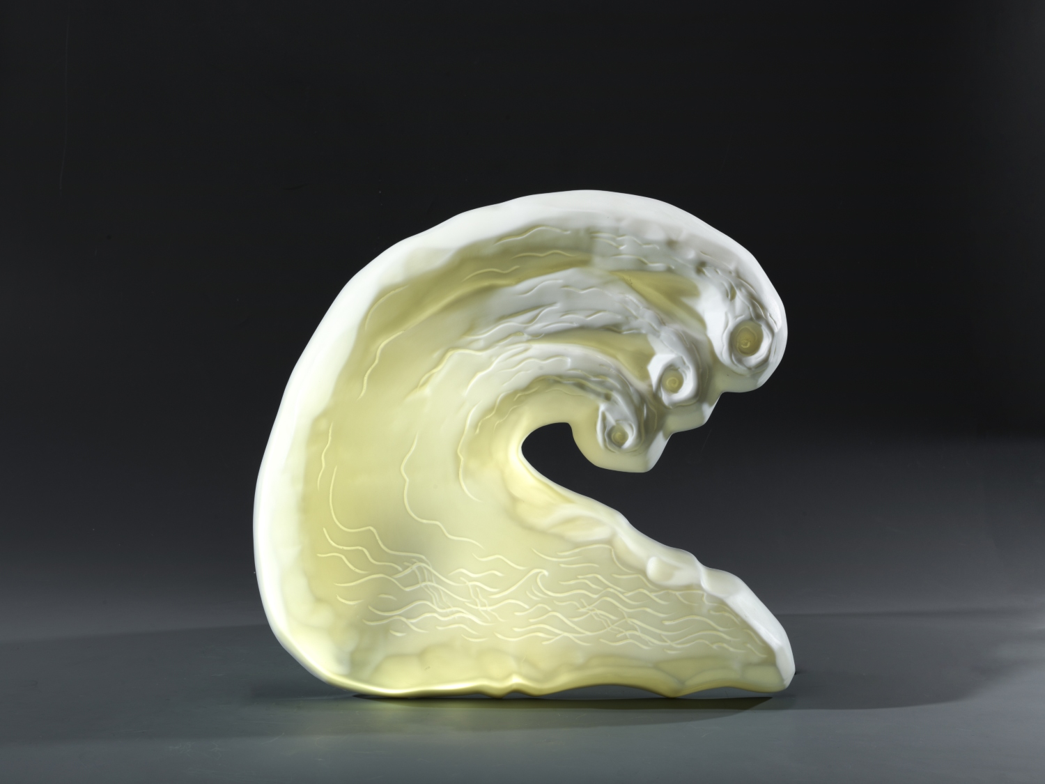 - Pearl Wave, 2024, translucent porcelain 1300ᵒC, 43 x 38 x 8 cm. Photo by Zheng Yongji
