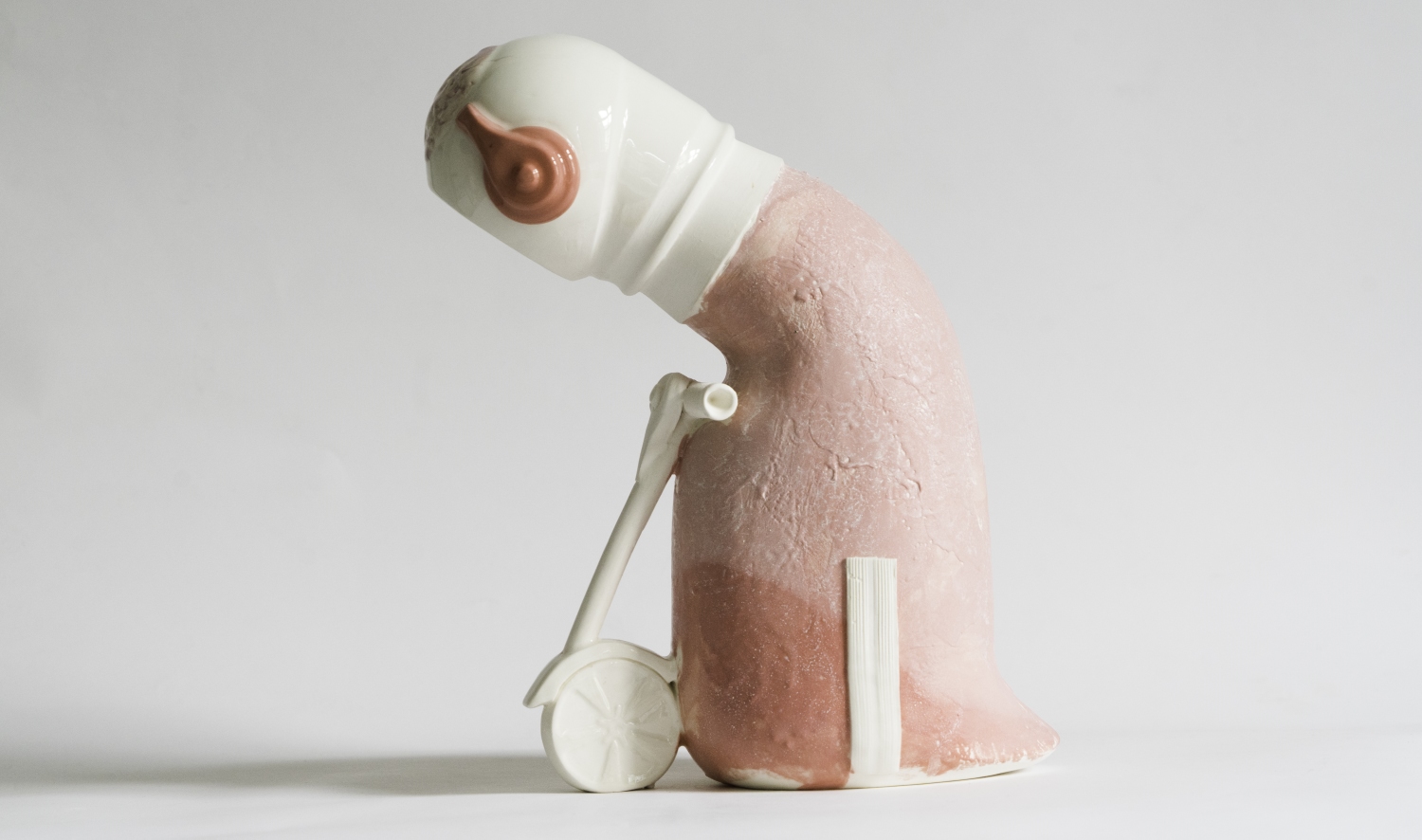 Pink on Scooter (#Anthropo-ciberneticus), 2019, porcelain, glazes, 1250°C, 28 x 26 x 16 cm