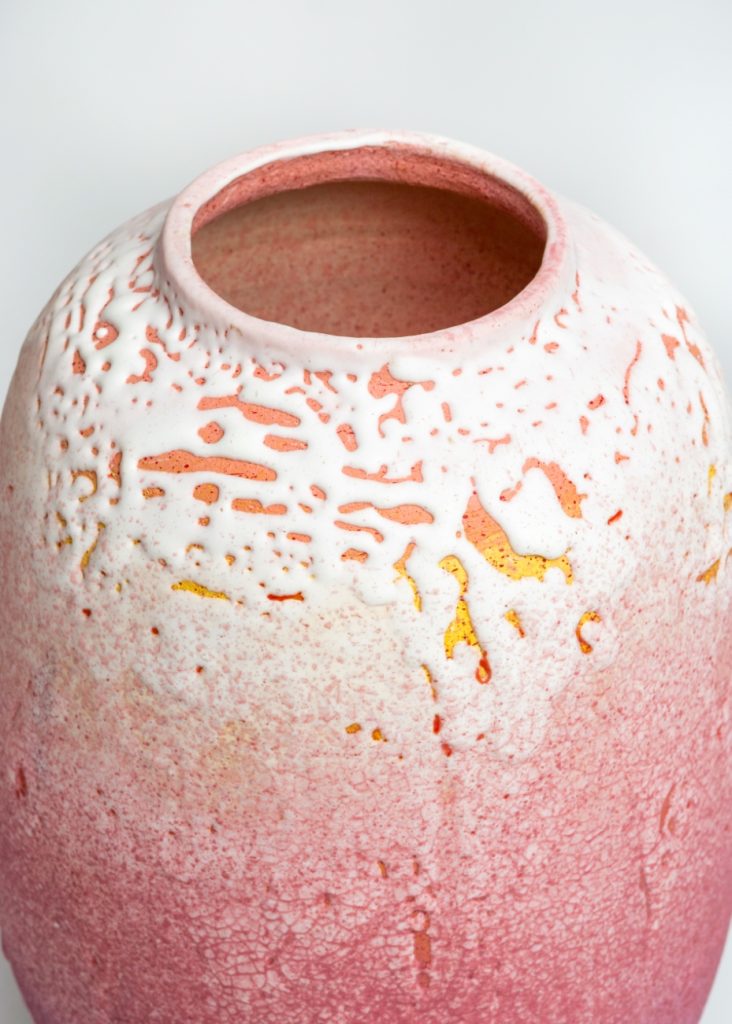My vessels reject that narrative. Their shapes are full-bodied—deliberately heavy, tactile, sensuous. I draw inspiration from makeup aesthetics: skin tones, shimmer, foundation, blush, nail polish. It’s my gendered response to the idea of a “feminine touch”— ironic, layered, and rooted in contradiction.