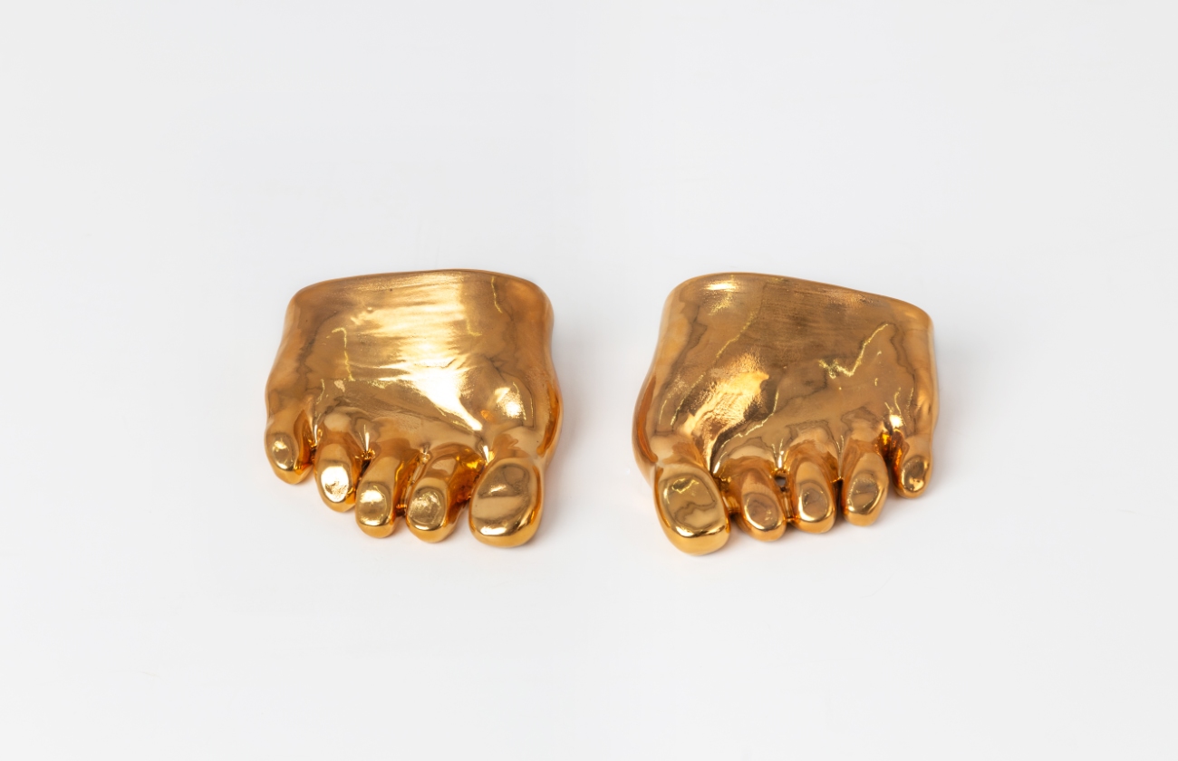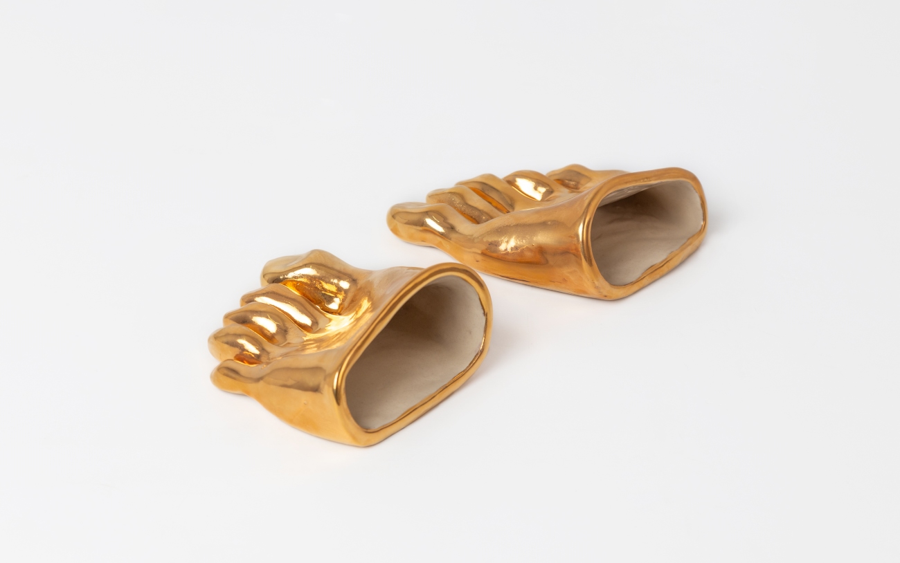 Venus Feet, 2024, stoneware, gold luster; 30 x 10 x 7 cm