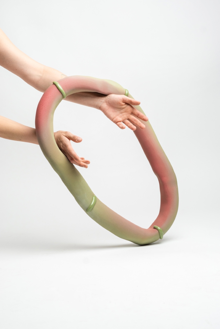 Soft Pink Loop, 2022, stoneware, pigments; 43 x 25 x 15 cm