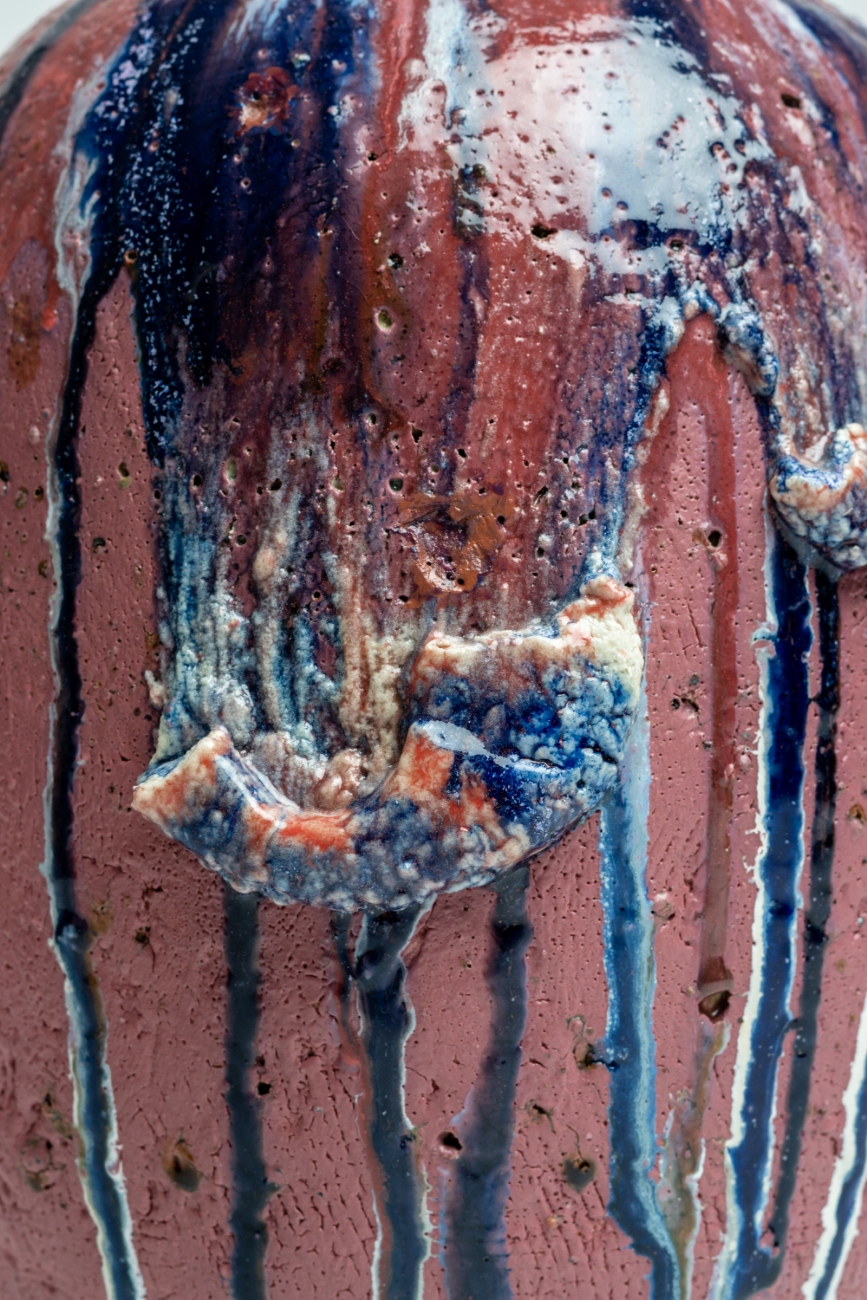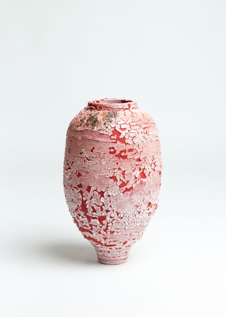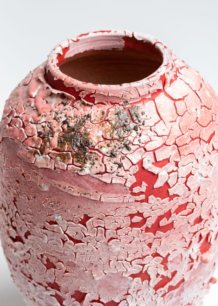 No Name Red, 2021, stoneware, pigments, wild clay; 30 x 30 x 50 cm