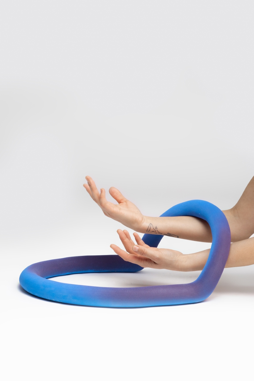 The project consists of a set of colorful body sculptures that call for performative action: to be worn and engaged through semi-restrained gestures, evoking a state of flux, friction, and transformation. Each position on the body generates new movement possibilities, inviting a continuous negotiation between form and motion.