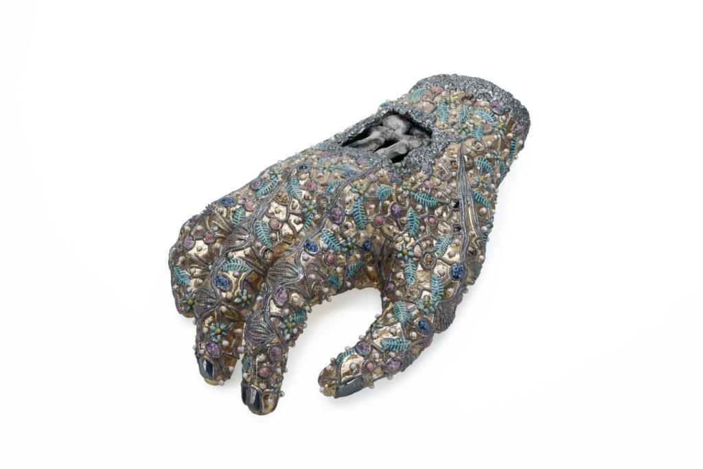 The highly detailed works allow my thoughts to wander and combine things that may not be very logical together but make sense in the end. When I work in my studio, I go from one piece to the next, combining several thoughts and fascinations. I love cabinets of curiosity, Wunderkammern, scientific collections, and museums with devotionalia. All these collections contain images that are related to art, but also to other areas. They show the exceptional, the strange, the rare, to secure the scientific order. They uplift the supernatural to restrain the whims of nature, suggesting order and security. At the same time, they warn us of the chaos that will occur as soon as we let go of this proposed order. They are images that scare us and also restrain that fear. This ambivalence makes us look with both admiration and disgust.