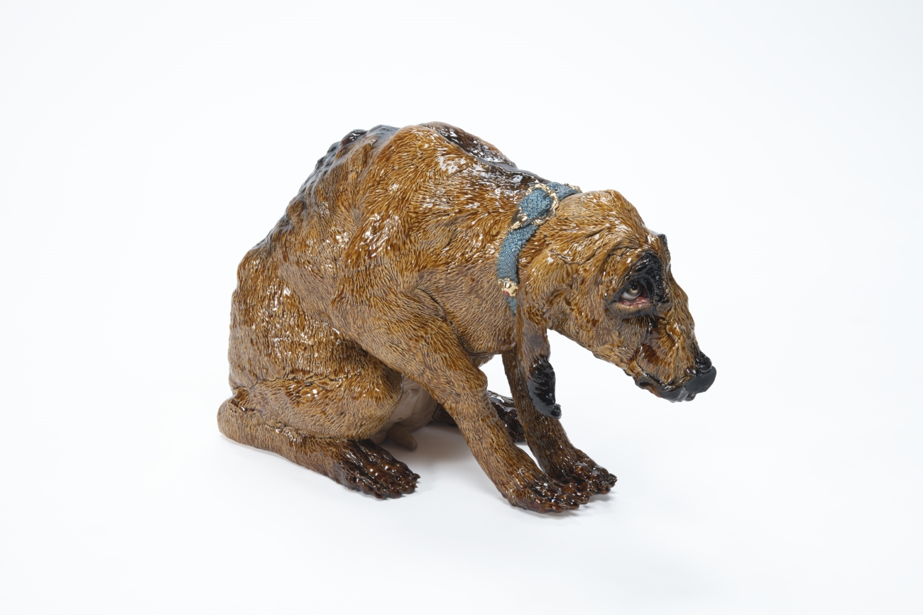 - Zielige Bloedhond, 2022, ceramic sculpture, 42 x 28 x 70 cm.