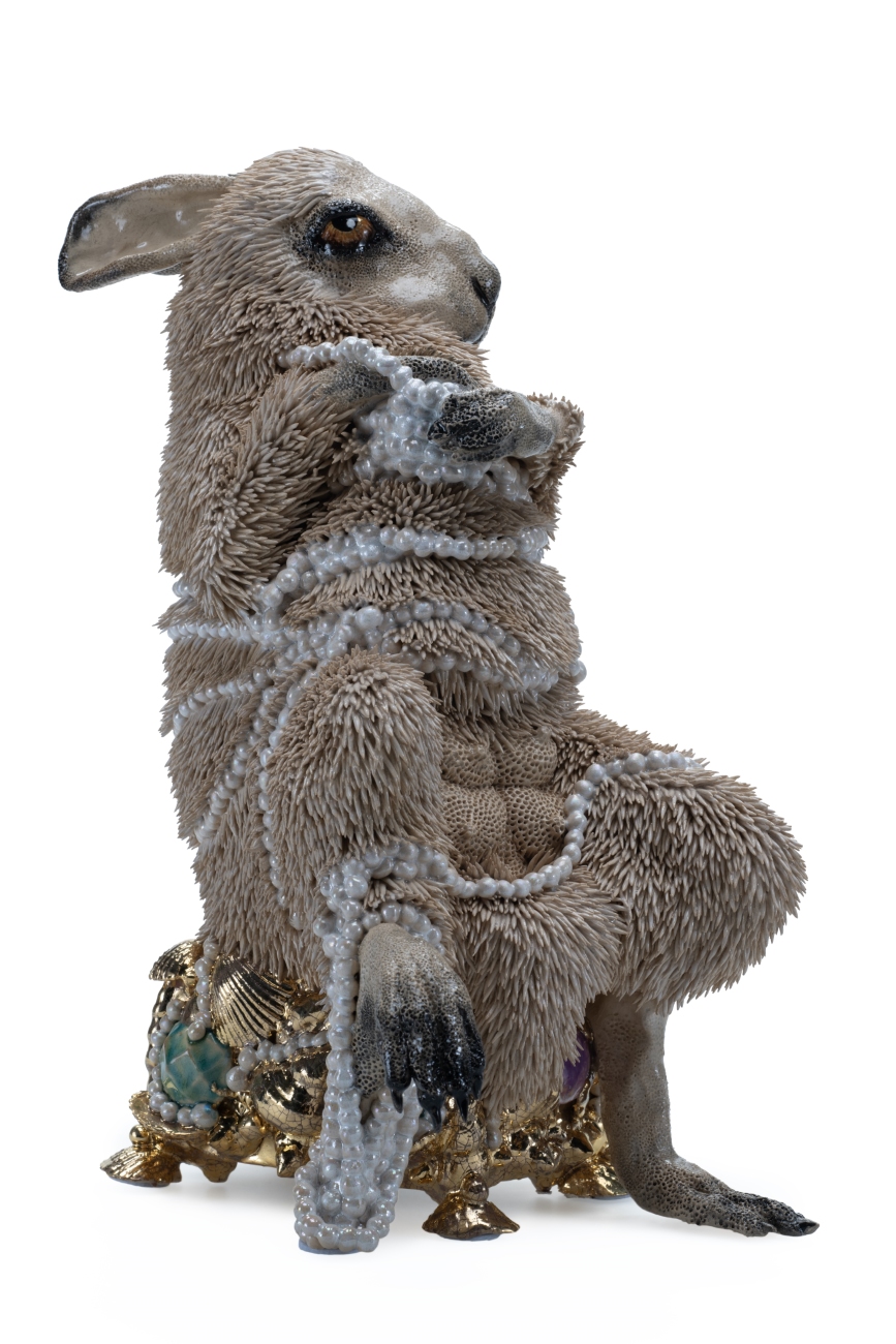 - Witte Haas met Parels, 2025, ceramic sculpture, 37 x 21 x 29 cm.