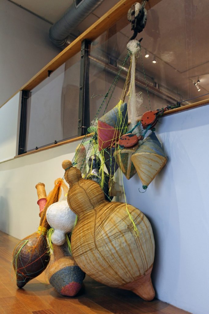 - Tethered and Restricted, 2021, Handbuilt Paper Clay (Earthenware/Stoneware), Handmade Paper (Up-cycled Clothing + Locally Sourced Plants), Handmade Rope from Up-cycled Bedding, Rust Dye, 3’ x 10’ x 7’. This installation references public beaches with swim sections indicated by ropes and buoys. This installation incorporates a boundary-like sensibility; representing safeguarding and respect for nature. The space is literally roped off — making it symbolic of either a safe or contained space.