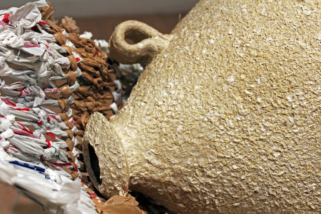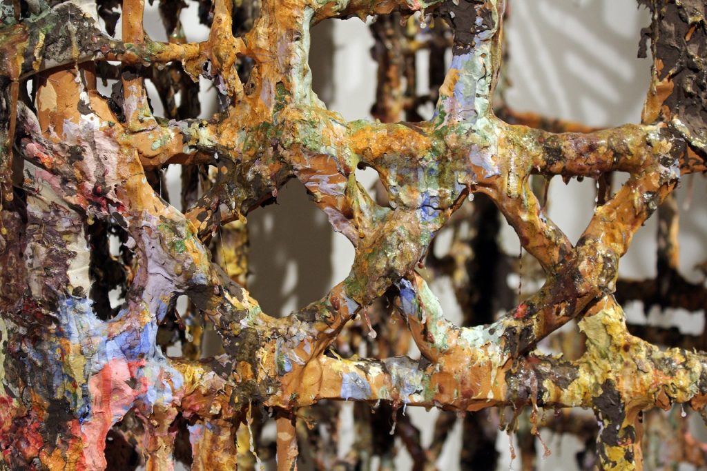 My materials and my process show my concern for natural ecologies through meticulous attention to turning earthen and upcycled materials into strong sculptural form. My monumental sculptures are made out of earthenware clay, handmade paper pulp, and upcycled waste materials (plastic bags, fishing line, electrical wire, and old clothing and bedding). I marry my earthen objects with industrial surplus that is re-contextualized through repetitive textile processes and the contrasting media charges my work with tension. The union of materials also serves as a metaphor for the complex relationship that humanity has with the natural world.