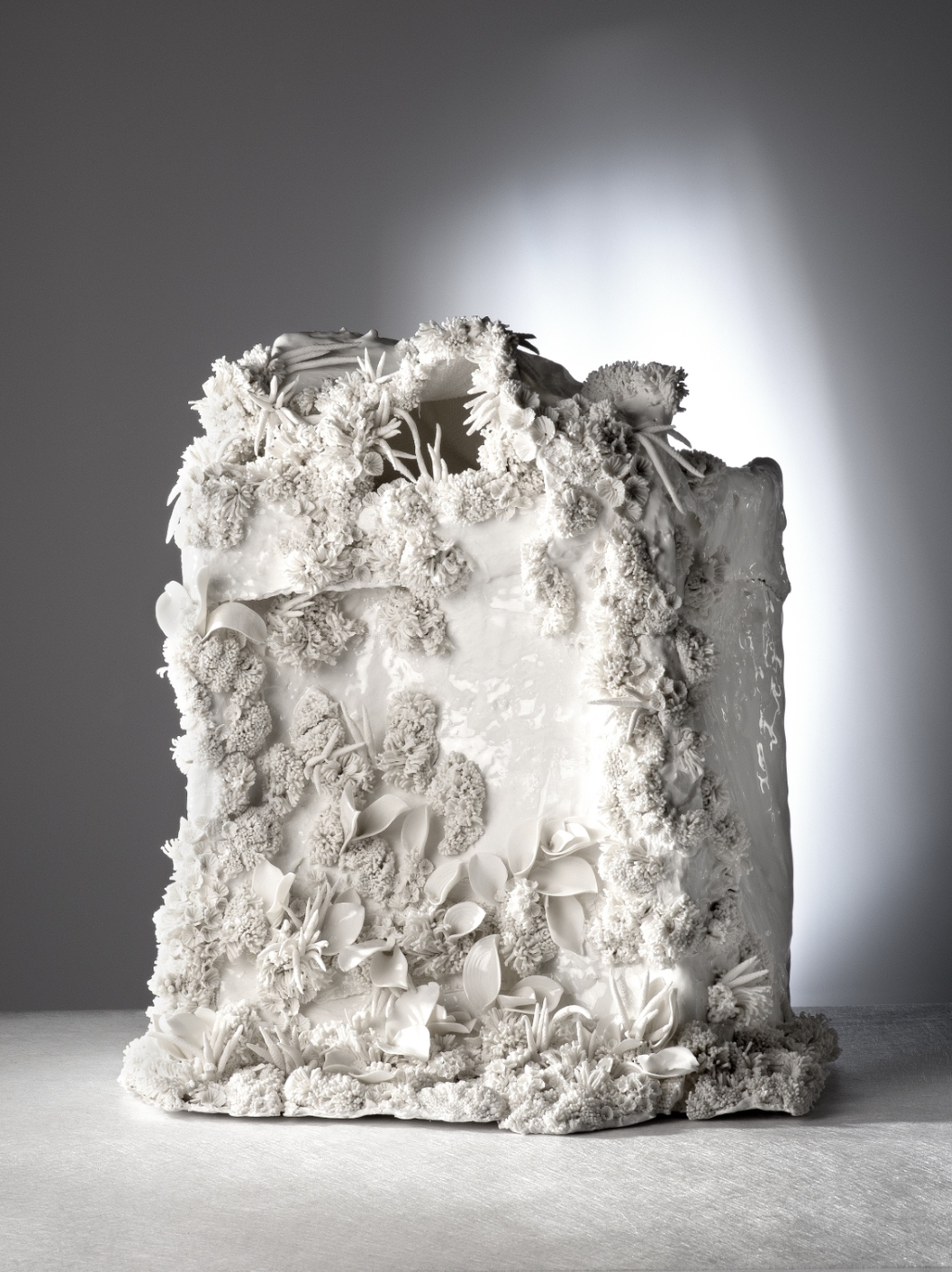 Corals, flowers, and unexpected vegetation decorate various surfaces with a constant inventiveness dominated by a form of poetry. This artist multiplies the details, the cutouts, and the additions, making the most of the porcelain’s finesse. A vibrant light exalts these original works born of a constantly renewed imagination, while the white of the material gives a particular radiance to each model. We appreciate these milky creations, sometimes so fragile in appearance.