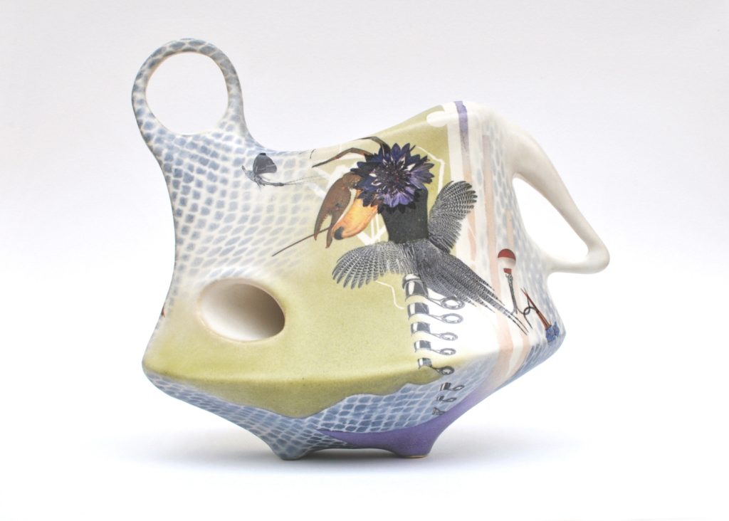 - Alive and Swimming, 2020, glazed stoneware, overglaze, digital decals, 12 x 5 x 8 inches
