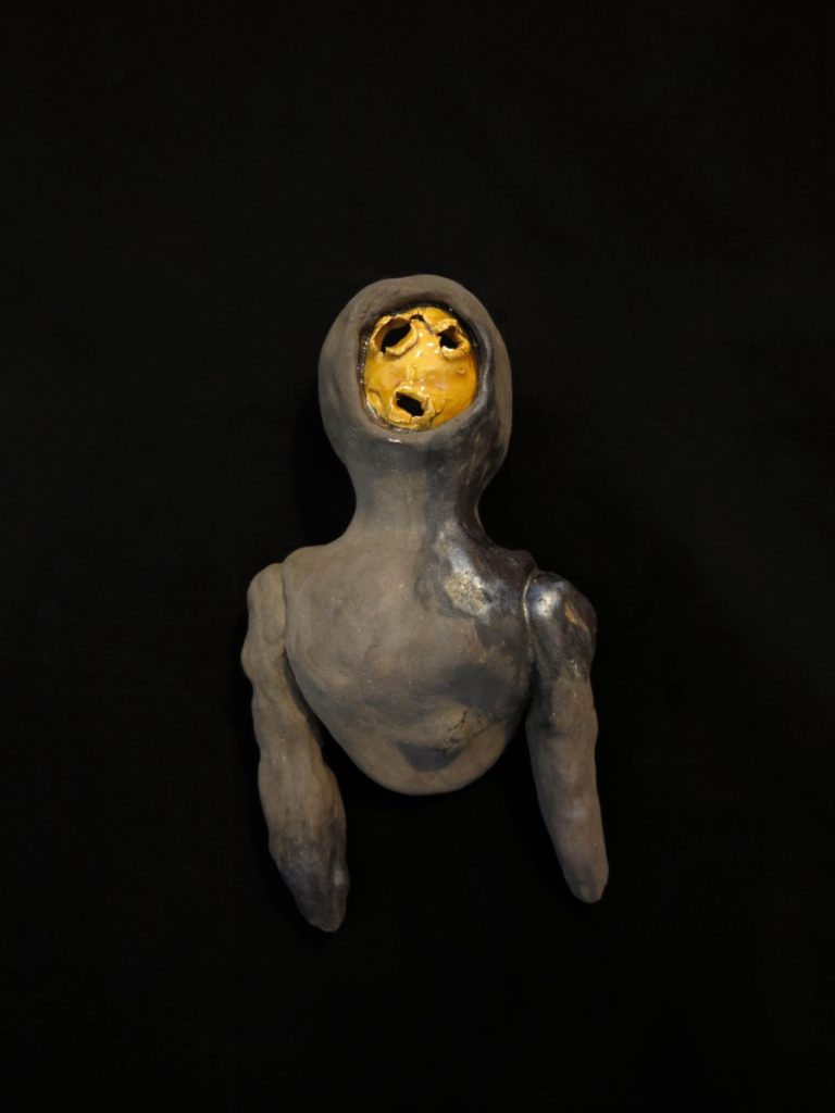 - The fallen bodies land – Piggy Bad Sow, 2023, glazed stoneware, 133×40 cm