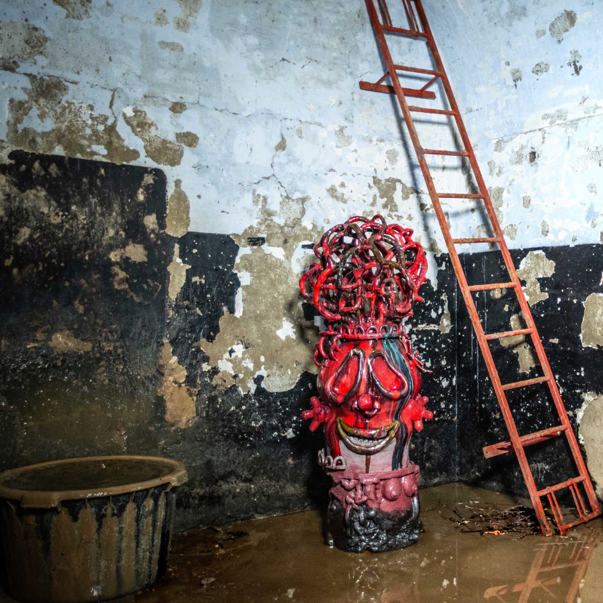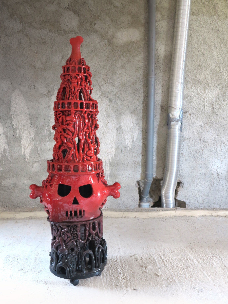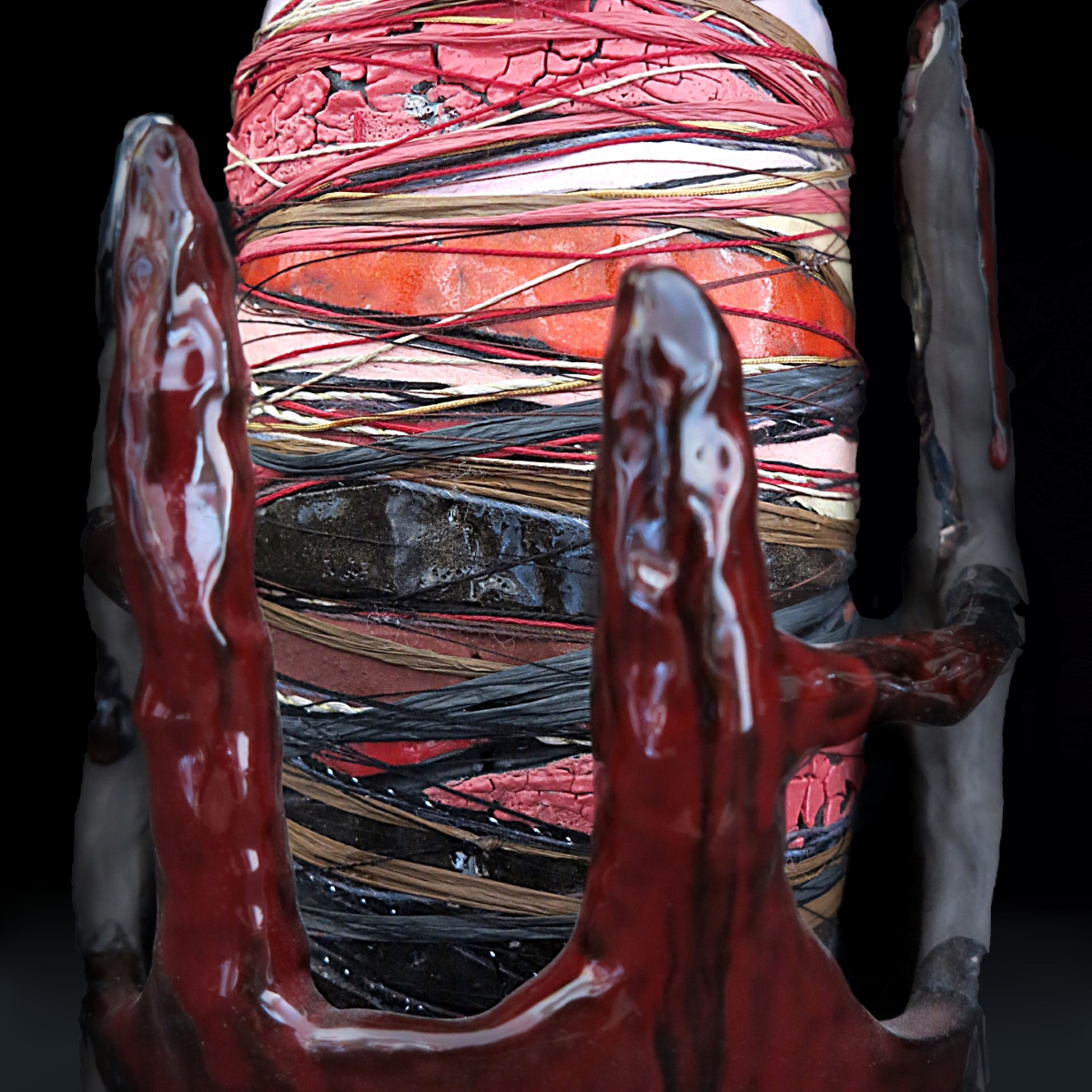 - The Banquet, Red Virgin, 2024, glazed stoneware, threads, 45x20x20 cm