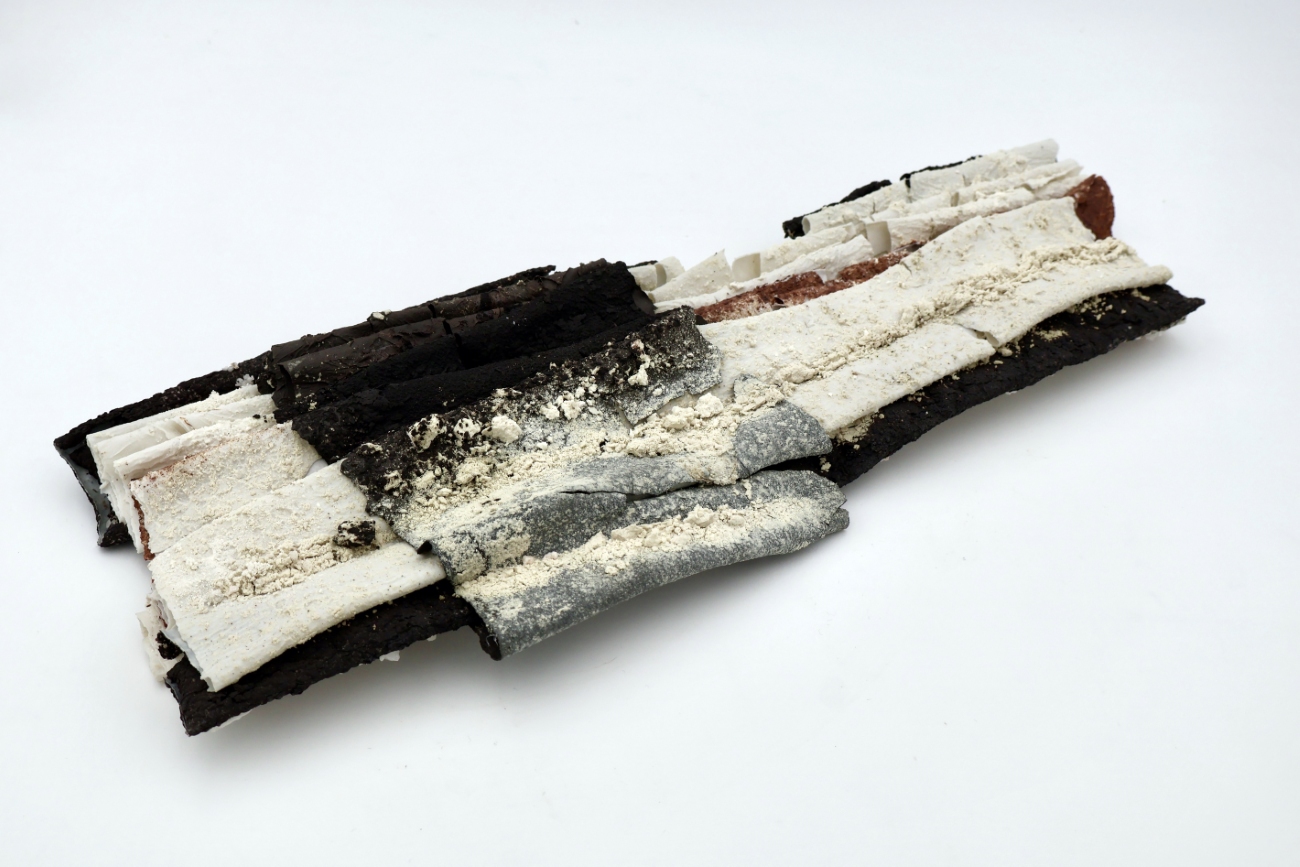 • Rhythm & Accumulation #1, 2025, white clay and porcelain, 27x50x2 cm