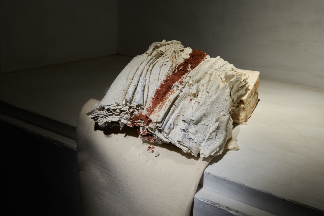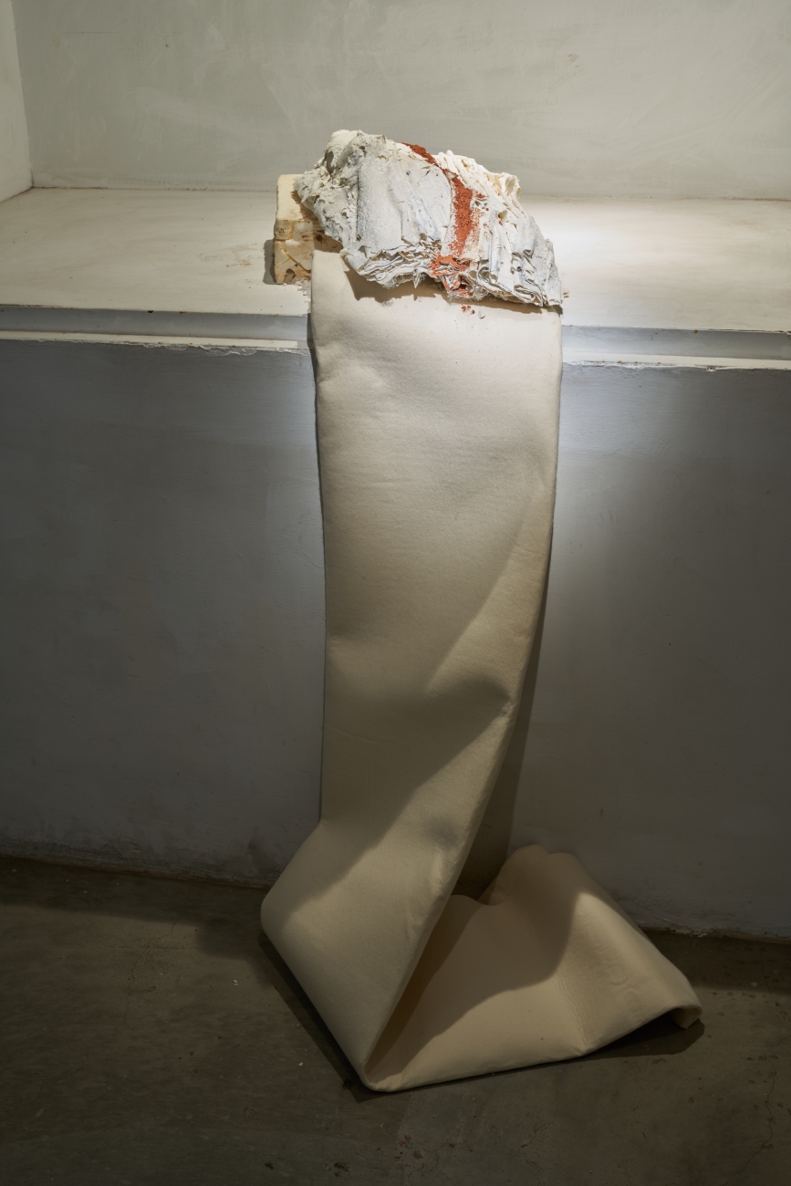 • with-out A ̶s̶ ̶o̶ ̶u̶ ̶n̶ ̶d̶ #1, Installation 2022, porcelain, terra cotta and wax and felt, 56x50x27H cm. Photo credit: Jason Goh