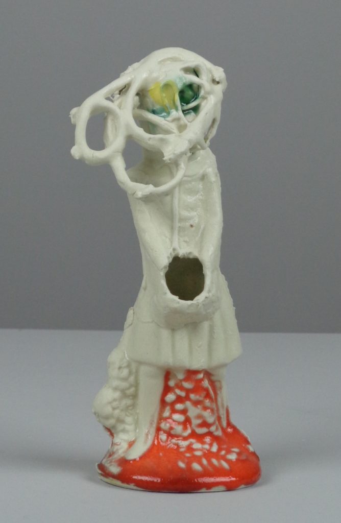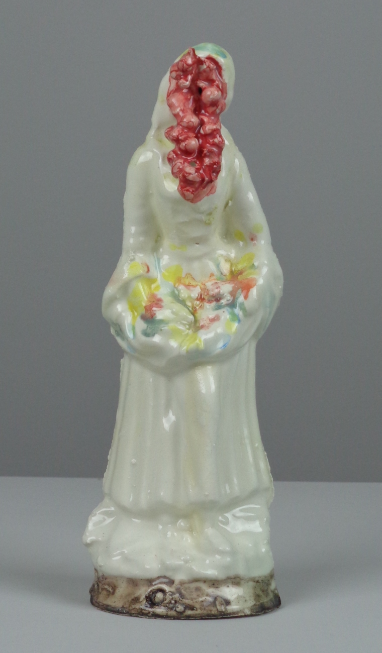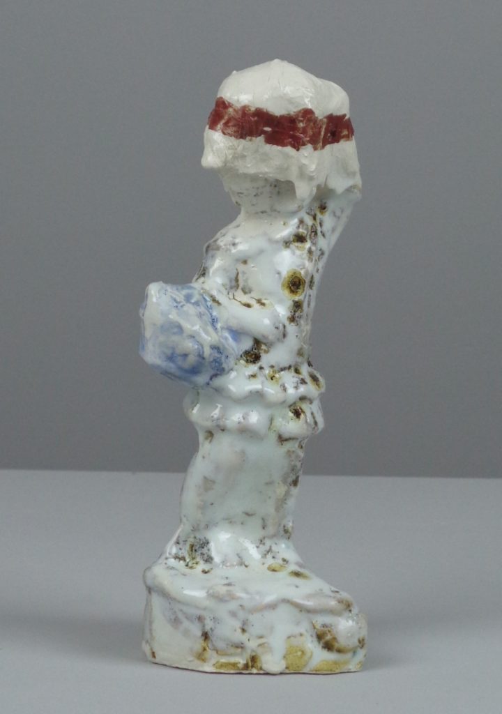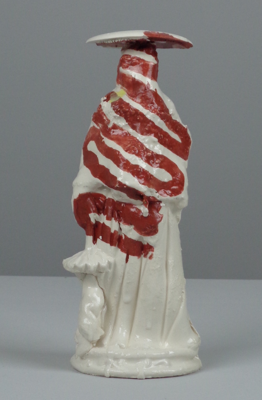 Works produced exclusively with slip-cast plaster moulds from historic figurines that play with multiples as a pretext to realize a transformation and arrive at a “sculptural object” that is both individual and autonomous but where one continues to sense the matrix of the standard-issue mould not made by the artist. Starting from a pre-existent impersonal statuette provoked in me a desire to contaminate the subject, through the concept of creative material, trespassing in historical and interior space concentrates in temporary images to then disintegrate anew in pure material. A ready-made image, an idea of the figure that can serve to give birth to a new genesis that was the point of departure of this project.
