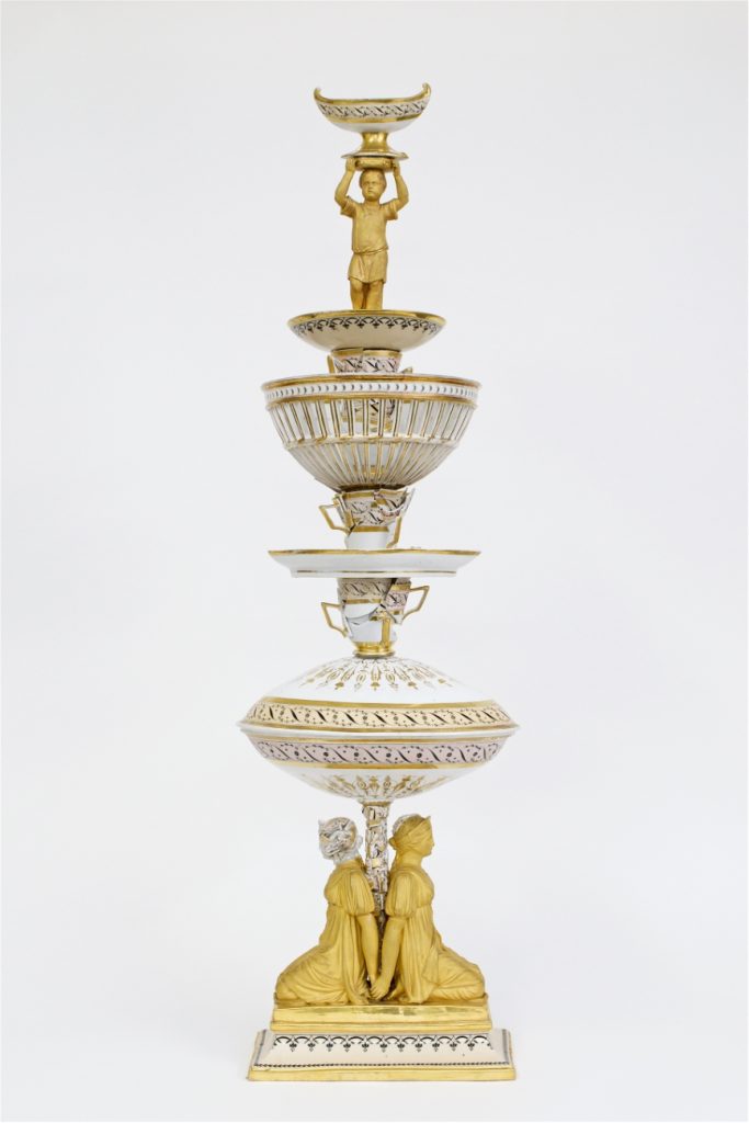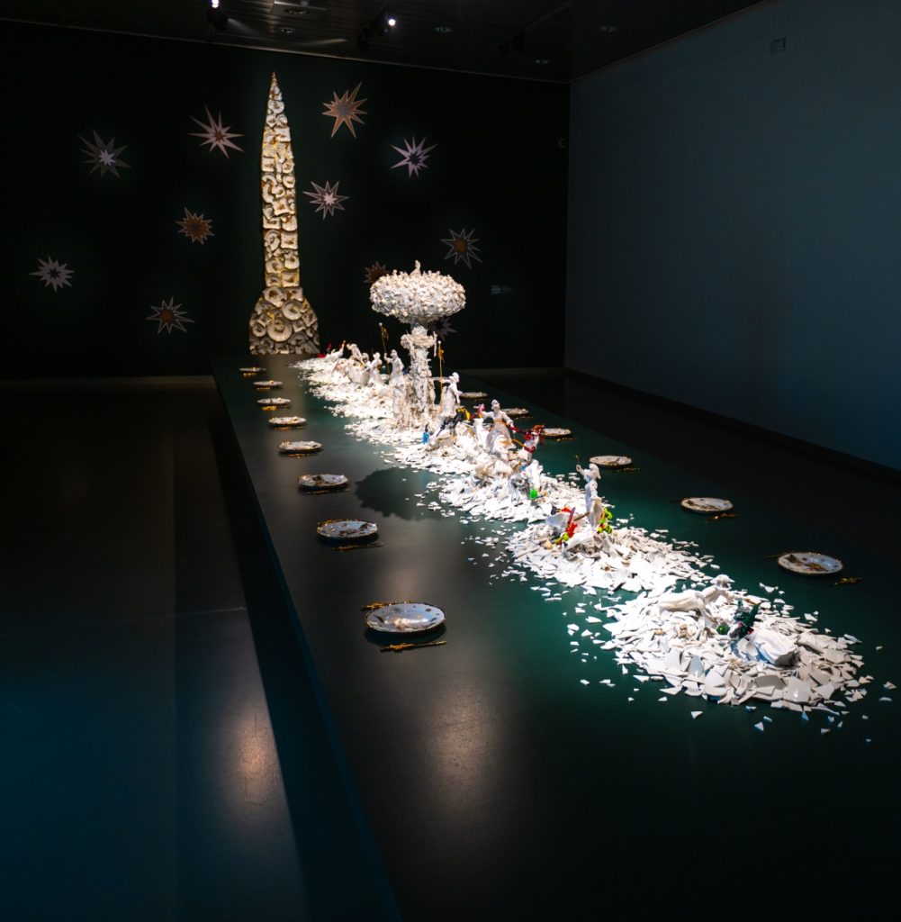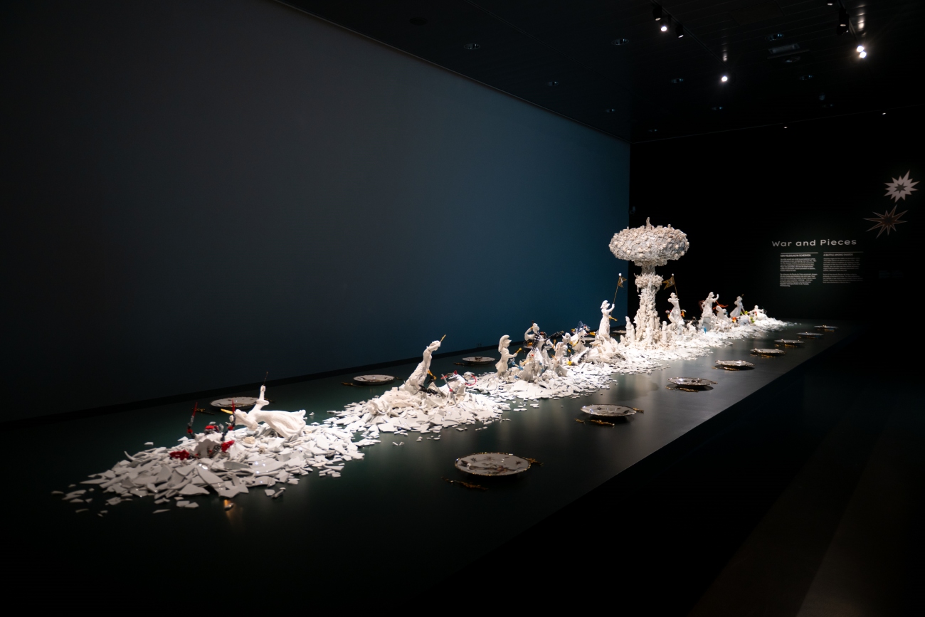 The exhibition ends grandly with War and Pieces, an eleven-metre-long installation offering a contemporary take on the opulent table centrepieces once favoured by European aristocracy in the 17th and 18th centuries.