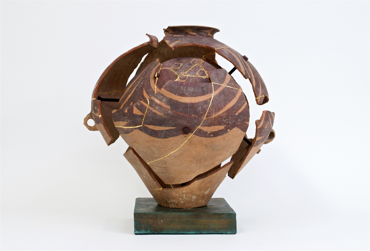 - Deconstructed Neolithic Machang, 2019, Bouke de Vries, Neolithic (600-1000 BC) Chinese earthenware on bronze base and mixed media, 50 x 55 cm, courtesy Bouke de Vries