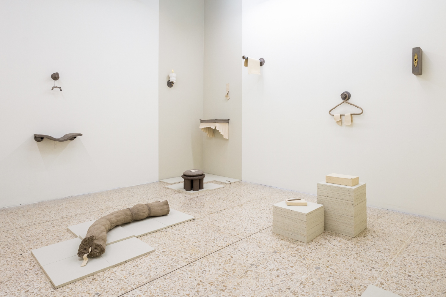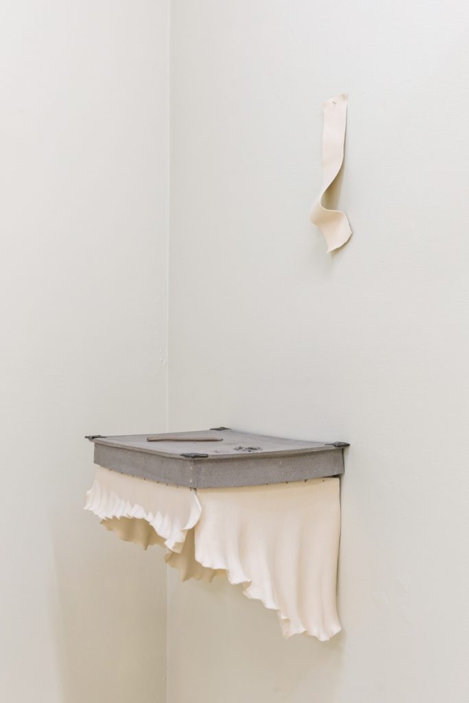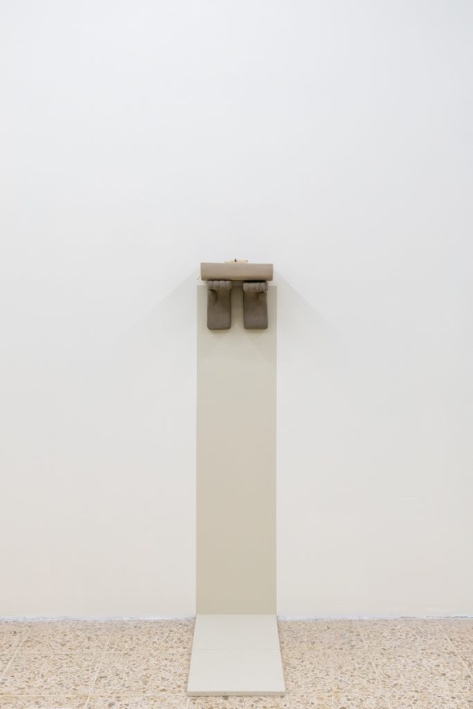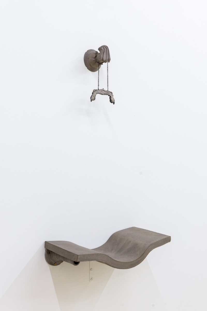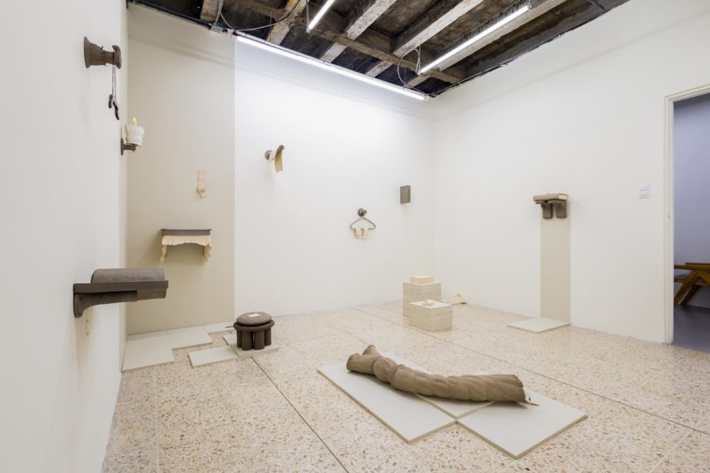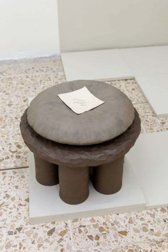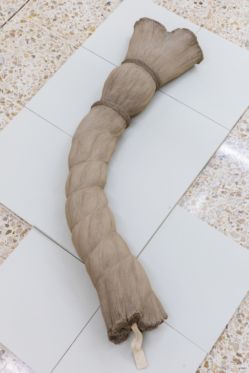 The translation of recognizable objects —such as a desk, a book, a hanger, a pile of papers and a tassel— into ceramics reminds us that what we see is not always what we think. Stripped of their expected function, it is in their detail and subtlety that the invitation to pause and soften emerges. Her objects transcend figuration, conveying a sense of protection: everything seems to preserve something precious, only partially revealed.