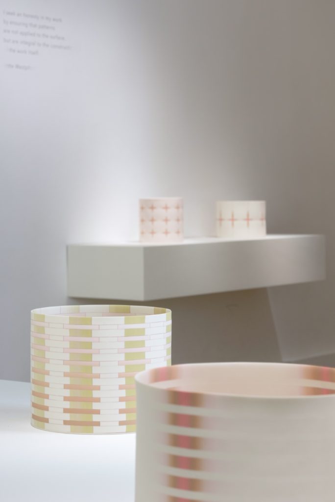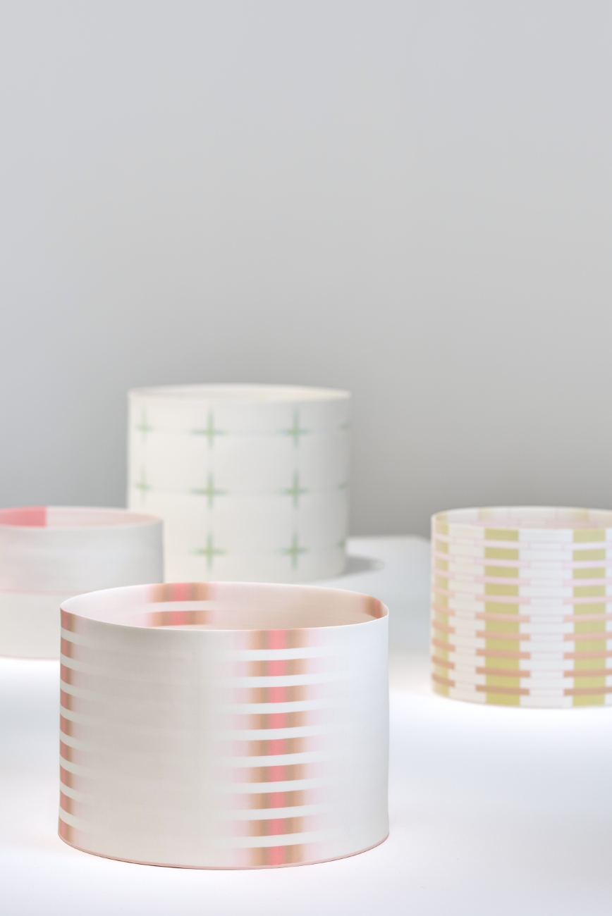 In her practice formed by a cross-aesthetic dialogue, Westphael translates textile logic into subtle ceramic materiality. Westphael’s unfolds pattern interactions in an ongoing exchange with abstraction, textile structures, and the relational nature of colour. These instigating conversations, translated into the medium of porcelain, propel her toward the point where structure begins to lose weight and colour approaches suspension. In the words of the artist: “In porcelain, I pursue the moment where colour no longer describes form but becomes atmosphere.”